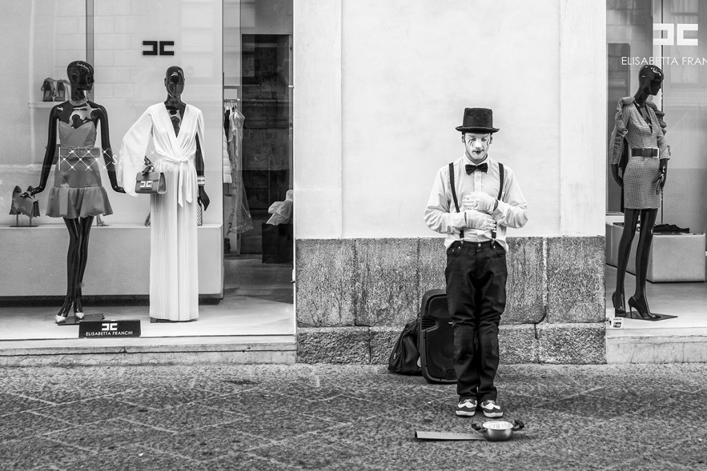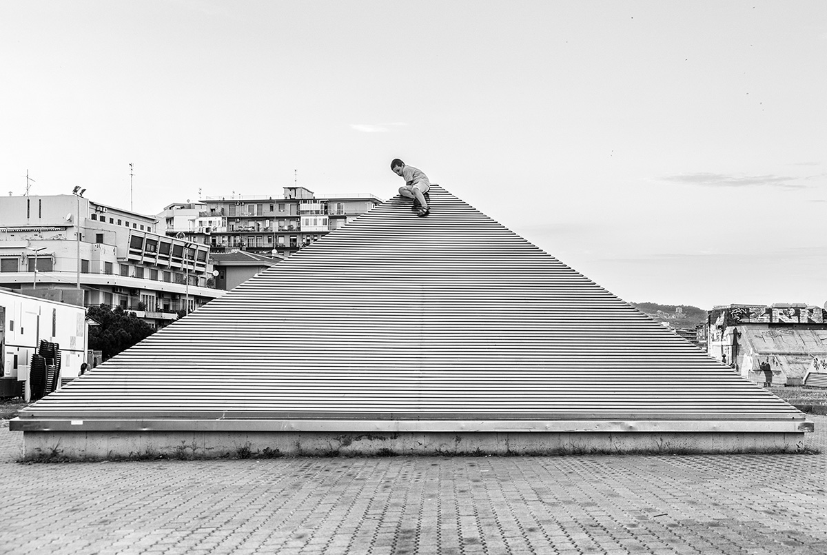 Questi segni ora sono nel silenzio di un mimo, nella leggerezza di una bolla, sono i frammenti dei giochi dell’infanzia, le ombre che sposano le geometrie di una piazza, i piedi di un passante tra un cane ed una tenda, il fumo che diventa maschera, la fiaba liberty della vecchia villa, la scalata di un bambino lungo l’esperimento dell’arredo urbano, il nuovo sentiero di Pollicino tra le corsie ciclabili, i fantasmi apparsi sulla sabbia, gli immancabili telefonini. Ed altro ancora.