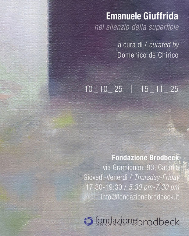 La Fondazione Brodbeck presenta, all’interno dei propri spazi, la mostra personale di Emanuele Giuffrida “Nel silenzio della superficie“, invitando il pubblico ad un’esperienza di sospensione visiva e percettiva: la superficie – pittorica, reale, emotiva – diventa soglia fragile tra ciò che appare e ciò che affiora, tra l’evidenza del mondo e le zone più oscure.