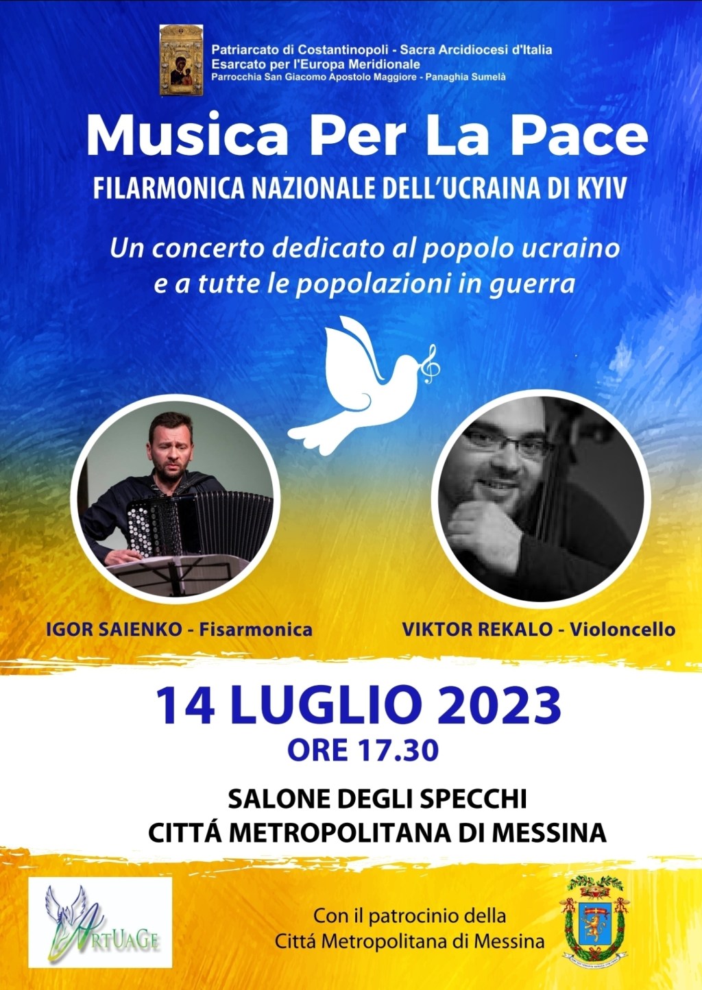 “Musica per la Pace” della Filarmonica Nazionale dell’Ucraina di Kyiv, organizzato dal Patriarcato di Costantinopoli – Sacra Arcidiocedi d’Italia – Esarcato per l’Europa Meridionale – Parrocchia San Giacomo Apostolo Maggiore Panaghia Sumelà, con il patrocinio della Città Metropolitana di Messina, sarà l’occasione per rinnovare la solidarietà nei confronti del popolo ucraino e di tutte quelle popolazioni in guerra.