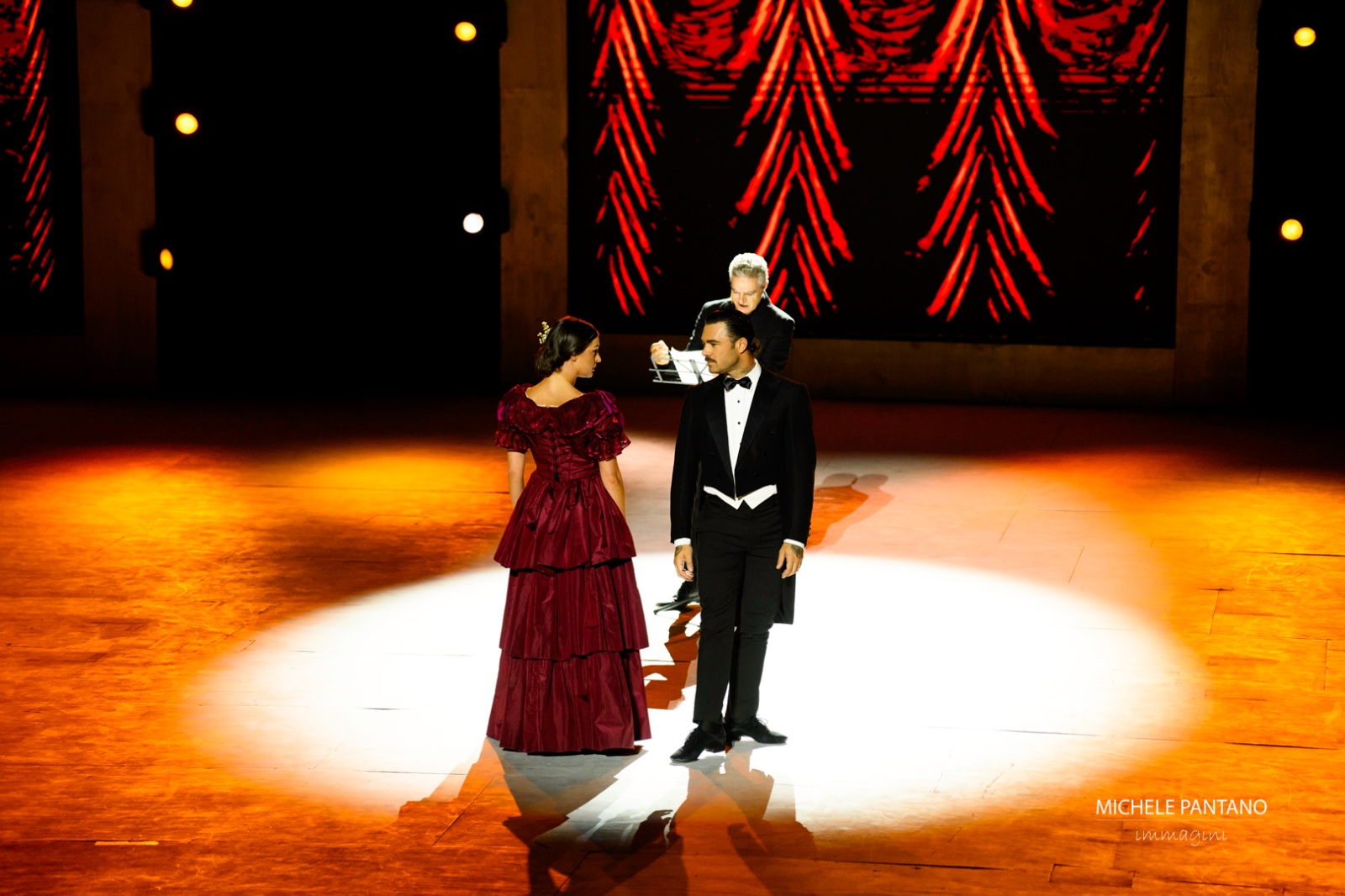 Madonia ha danzato con una giovane ballerina – Nicole Cartigiano – selezionata in occasione di un casting avvenuto le scorse settimane nella Capitale. Il valzer viennese è stato danzato in scena assieme ai ballerini della Peparini Academy. “Un’interpretazione in chiave classica” – ha spiegato Madonia – “ed una in chiave moderna e contemporanea”. Un contrasto suggestivo ed emozionante che ha conquistato il pubblico del Teatro Greco.