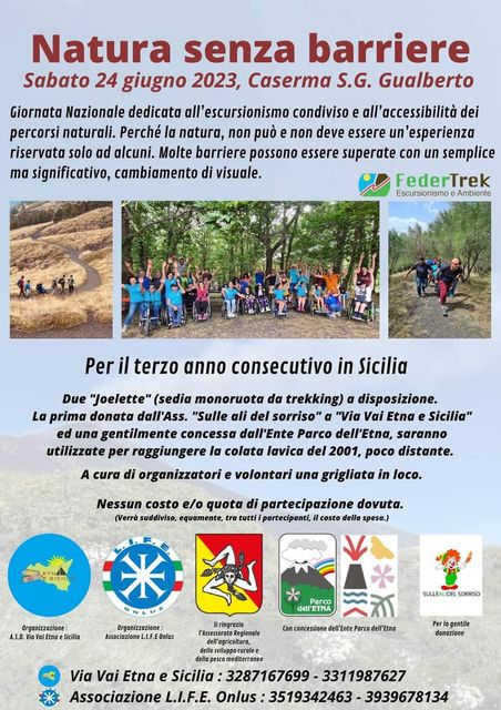 In particolare, sabato 24 giugno, l’associazione Via Vai Etna e Sicilia e l’Associazione L.I.F.E. hanno organizzato la manifestazione “Natura senza Barriere”, promossa da FederTrek Escursionismo e Ambiente, presso il Rifugio San Giovanni Gualberto.