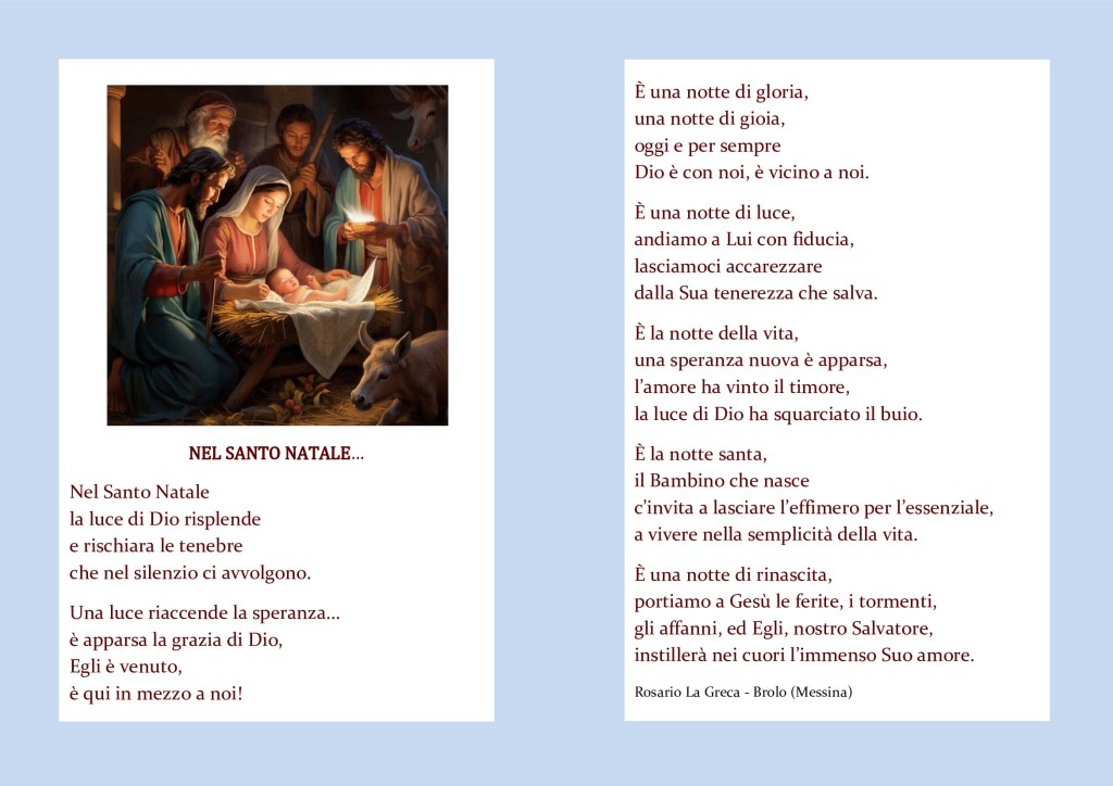 Per l’occasione delle festività natalizie, il poeta Rosario La Greca di Brolo (Messina), ha composto la poesia “Nel Santo Natale…”, ha il piacere di condividerla, augurando un sereno Natale e Buon 2026 a tutti.