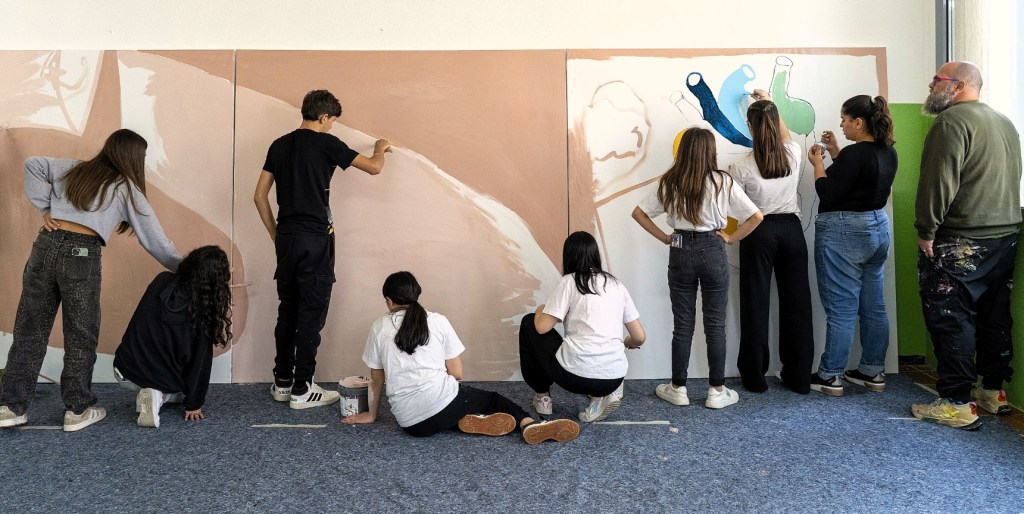 Il progetto è proseguito con un laboratorio di pittura curato dall’artista Igor Scalisi Palminteri, che ha coinvolto attivamente gli studenti in due giornate di attività creative, iniziate dopo la benedizione delle tele da lavorare. Protagonisti e protagoniste del laboratorio: 20 tra studenti e studentesse – 5 dell’I.C. Bianca, 5 dell’I.C. Capuana – De Amicis e 10 dell’I.T.I.S.S. Majorana.