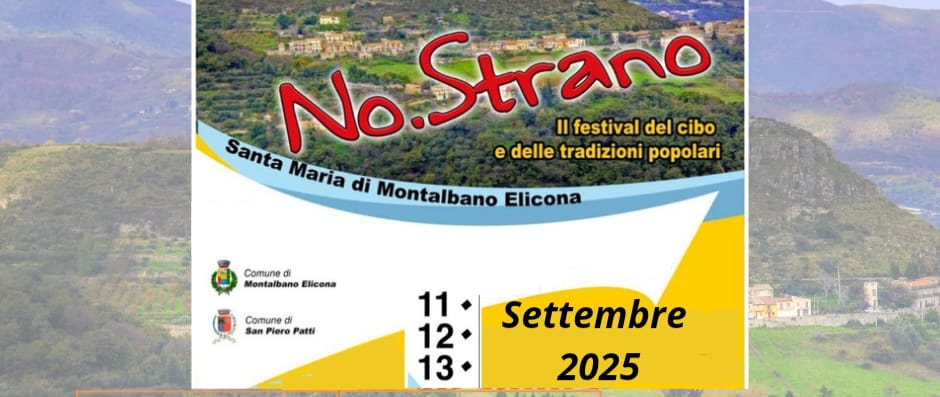 Tre giorni per celebrare il gusto autentico, le tradizioni e il patrimonio culturale di Santa Maria di Montalbano Elicona (ME): torna, alla sua terza edizione, NO.STRANO – Il Festival del Cibo e delle Tradizioni Popolari, organizzato dalla Pro Loco Santamaria APS in collaborazione con i Comuni di Montalbano Elicona e San Piero Patti.