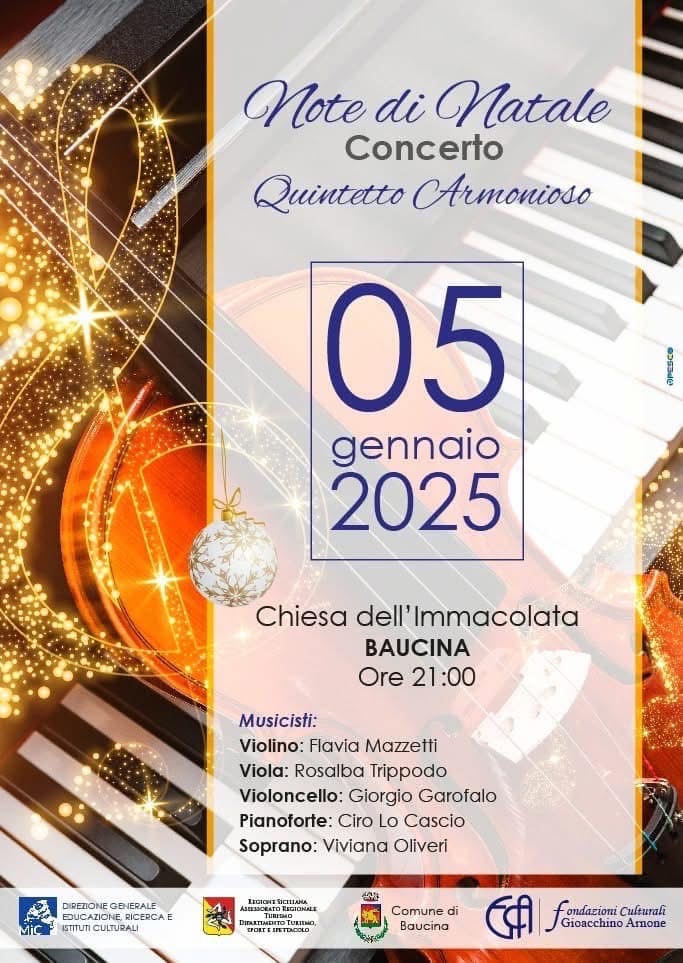 Domenica 5 gennaio alle 21.00, presso la Chiesa dell’Immacolata di Baucina, si respirerà la magia del Natale con il QUINTETTO ARMONIOSO che eseguirà un concerto sulle “NOTE DI NATALE”.