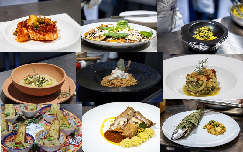A materializzare il Pesce Stocco alla Ghiotta il presidente e vicepresidente Associazione Provinciale Cuochi Messina, chef Paolo Romeo e Carlotta Andreacchio. Il piatto che prevede l’impiego dello stoccafisso, alias merluzzo essiccato, del Mar del Nord è stato affiancato al Nero d’Avola delle Cantine Amato Linea Vibrazioni e al dolce peloritano in degustazione che è la pignolata, portato sempre per motivi di storicità. Catania ha premiato la pasta La Norma preparata dalla vicepresidente dell’Associazione Regionale Cuochi Catania Alessandra Ragusa con il sous chef Gianluca Ragusa e da Patrizia Citta, Barbara Furnari e Rita Celano. L’espressione del dessert è stata: le minne di Sant’Agata che rievocano le mini cassate. L’Etna rosso della Cantina Cantoneri di Rosa Ciancitto ha esaltato il piatto salato. Nel corso del secondo giorno, lo chef Mario Puccio – presidente Associazione Provinciale Cuochi Palermo ha messo in scena la Pasta con le Sarde, coadiuvato dal vicepresidente Fabio Armanno e dal segretario dell’Associazione Maria Carmela Catalano. La descrizione dei fasti pasticceri è caduta sul Cannolo, curato da Chef Armanno che ha individuato la cialda più scura e più piccola di quello più comune. Anche in questo caso si è scelto un vino – il Grillo di Siquelia (giovane cantina di Marzia Lo Vecchio del comprensorio palermitano). Agrigento si è concentrato sul Macco con le fave su esecuzione dello chef territoriale Giovanni Russo Fiorino dell’Associazione Provinciale Cuochi Agrigento con il presidente Giovanni Chianetta, del pastry chef Salvatore Argento, Alessandro Lauretta, Bernardo Pupello e Antonino Segreto. Ad accompagnarlo il Catarratto delle Cantine Virone. Per arricchire lo spettacolo lo Chef Argento si è dedicato alla procedura dell’Agnello Pasquale di Favara. L’assessore alle Politiche Sociali Marco Vullo e il segretario territoriale Cna Claudio Spoto hanno evidenziato di voler agire sempre in team per omaggiare e sviluppare l’importanza dei loro prodotti autoctoni. Il vicepresidente dell’Associazione Cuochi di Trapani Giovanni Giammanco ha continuato a delineare i requisiti di tradizione del noto Cuscusu trapanese con il pesce povero), sostenuto dal suo staff Davide Catalano, Ignazio Savona, Pietro Mineo, Dario Di Pasquale e SaIvatore Adragna. La pietanza è stata valorizzata dal Catarratto di Cantine Ferreri&Bianco, che narra l’area della Valle del Belice ed è stato insignito da molti riconoscimenti. Questa zona ha portato la cassatella a base di ricotta con gocce di cioccolato. Lo chef Samuele Palumbo dell’Associazione Cuochi di Caltanissetta ha presentato il Maccheroncello con il pesto nisseno, insieme al presidente Salvatore Agnello e a Gabriele Leprini. Il Grillo di Terre Sikane di Francesco Sciacchitano della provincia nissena ha formato una gradevole accoppiata. Il dessert in abbinamento: il Torrone nisseno. A livello istituzionale il comune è stato rappresentato dal segretario territoriale Cna Trapani Francesco Cicala e di Caltanissetta Pasquale Gallina. –