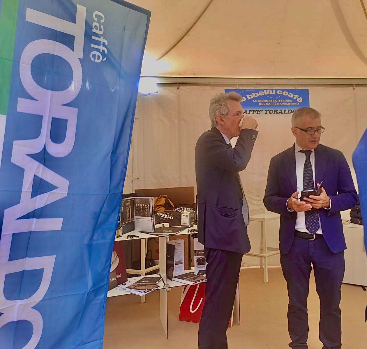 L’arrivo del Sindaco del Comune di Napoli Gaetano Manfredi sul palco centrale del Maschio Angioino è coinciso con la telefonata in diretta del collega sindaco di Trieste Roberto Dipiazza, nell’ottica di un futuro gemellaggio tra le due città sul tema del caffè.
