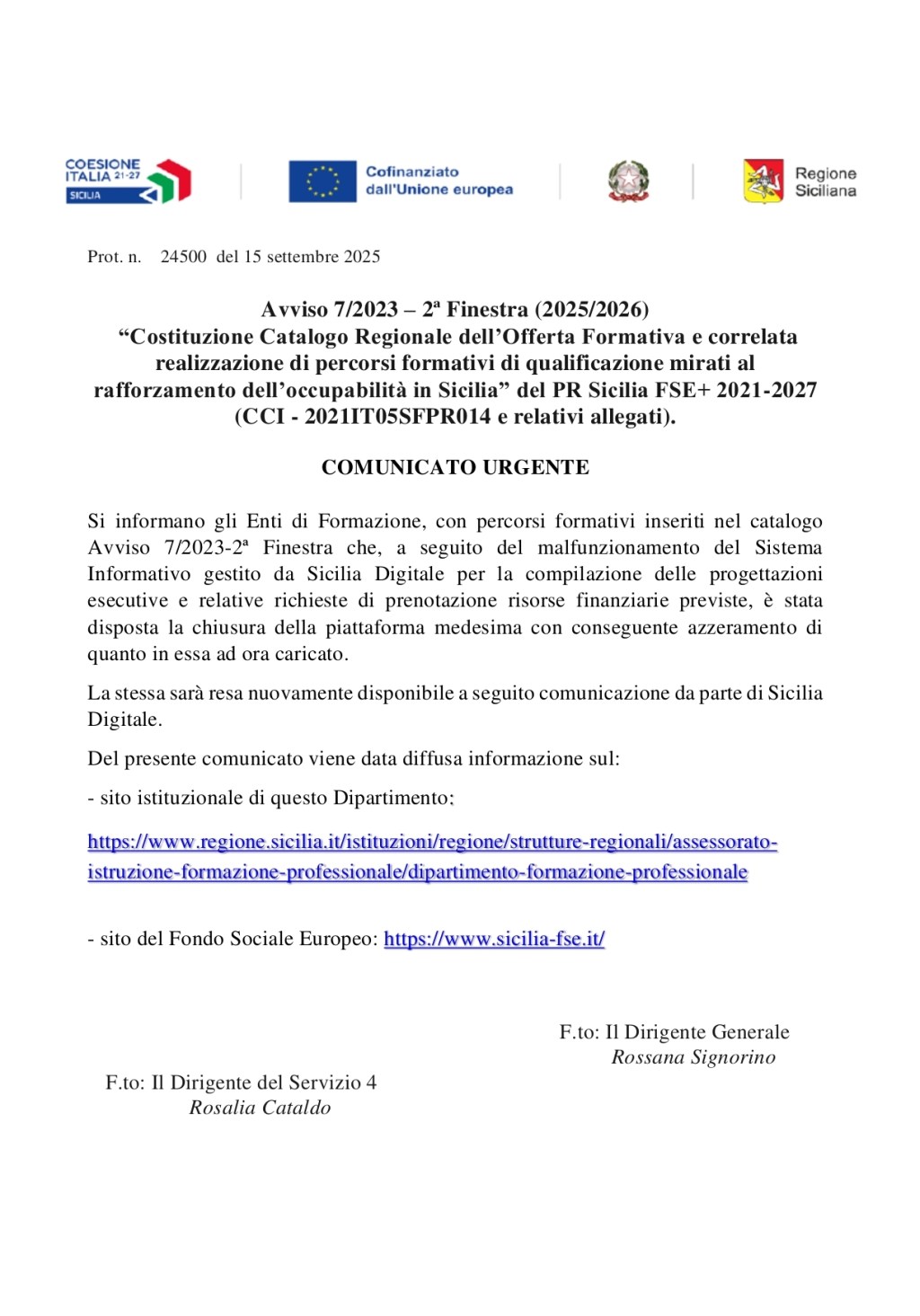 Secondo quanto riferito dal Movimento, da questa estate la piattaforma digitale — gestita da Sicilia Digitale in convenzione con la Regione Siciliana — che consente agli enti di formazione di inserire le richieste di partecipazione ai corsi, risulta bloccata. Le domande già presentate sarebbero state azzerate, generando un effetto domino che ha paralizzato l’intero sistema formativo.