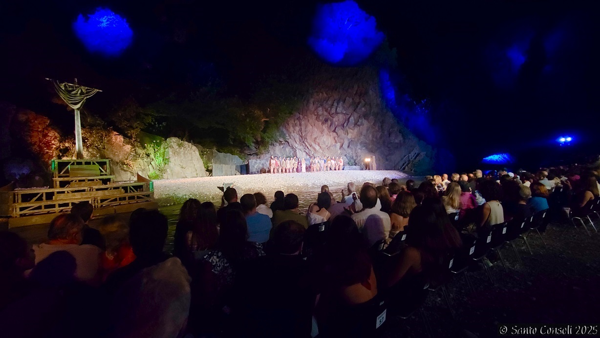 “Uno spettacolo straordinario – ha detto Michele Cucuzza, direttore dei Tg di Antenna Sicilia – innanzitutto per lo scenario meraviglioso, quello delle Gole dell’Alcantara, che il regista Giovanni Anfuso sa utilizzare al meglio. Perché fa entrare in acqua gli attori, li fa spostare sulla spiaggia, su queste rocce basaltiche uniche al mondo, mentre narrano dell’epopea che tutti conosciamo con personaggi come Polifemo, Circe, i Feaci, i Proci. Raccontano il peregrinare di Ulisse fino al ritorno, finalmente, all’amore di Penelope. E lanciano messaggi potenti, come quello contro l’orrore della guerra, che provoca lutti e distruzioni senza alcun senso, o l’affermazione che tutti i naufraghi hanno il diritto di essere accolti”.