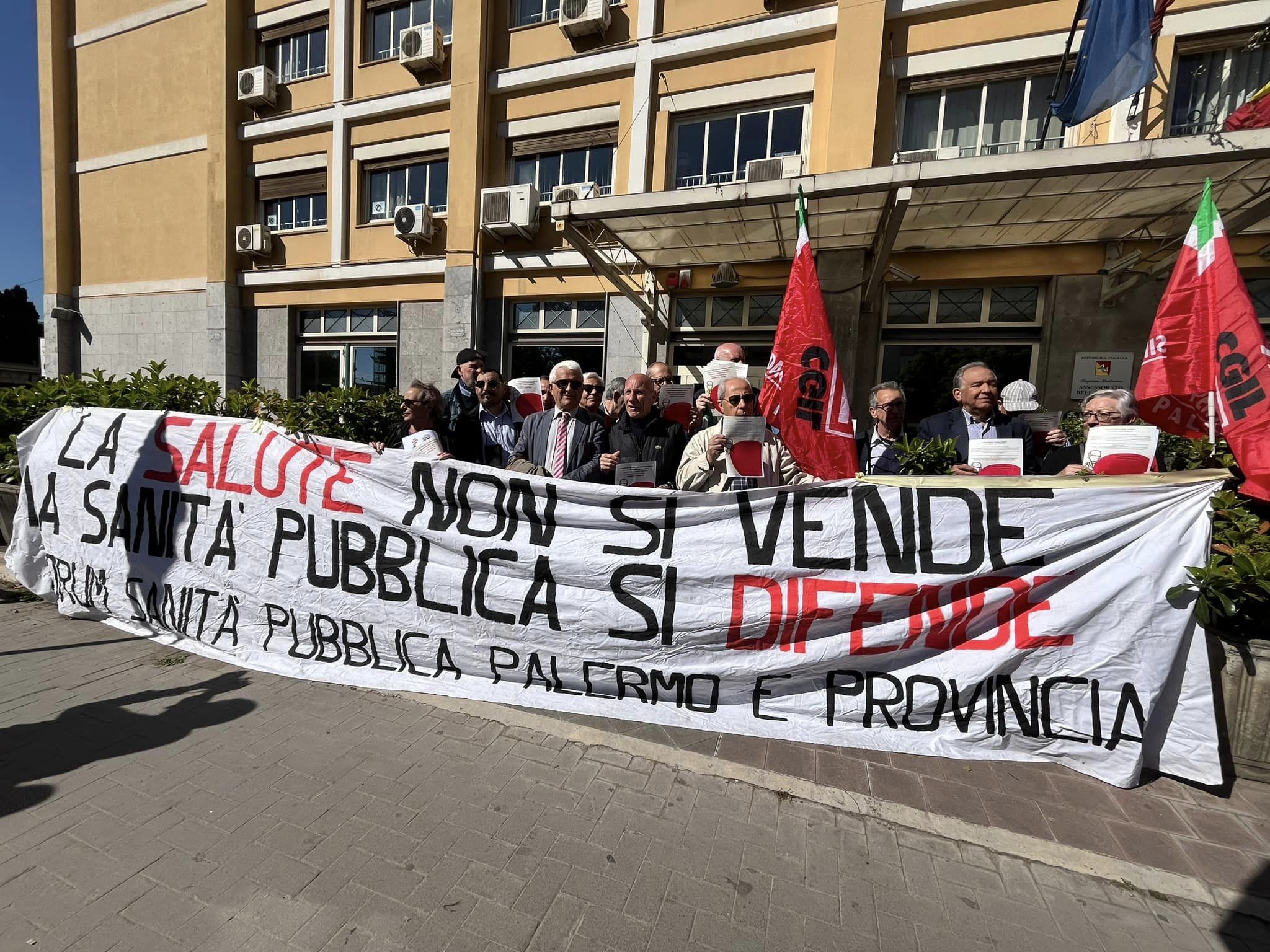 Palermo 8 aprile 2024- Si è tenuto stamattina il sit-in di protesta del Forum Sanità pubblica Palermo e provincia sotto l’assessorato alla Sanità, piazza Ziino Palermo, per la giornata contro la commercializzazione della salute.