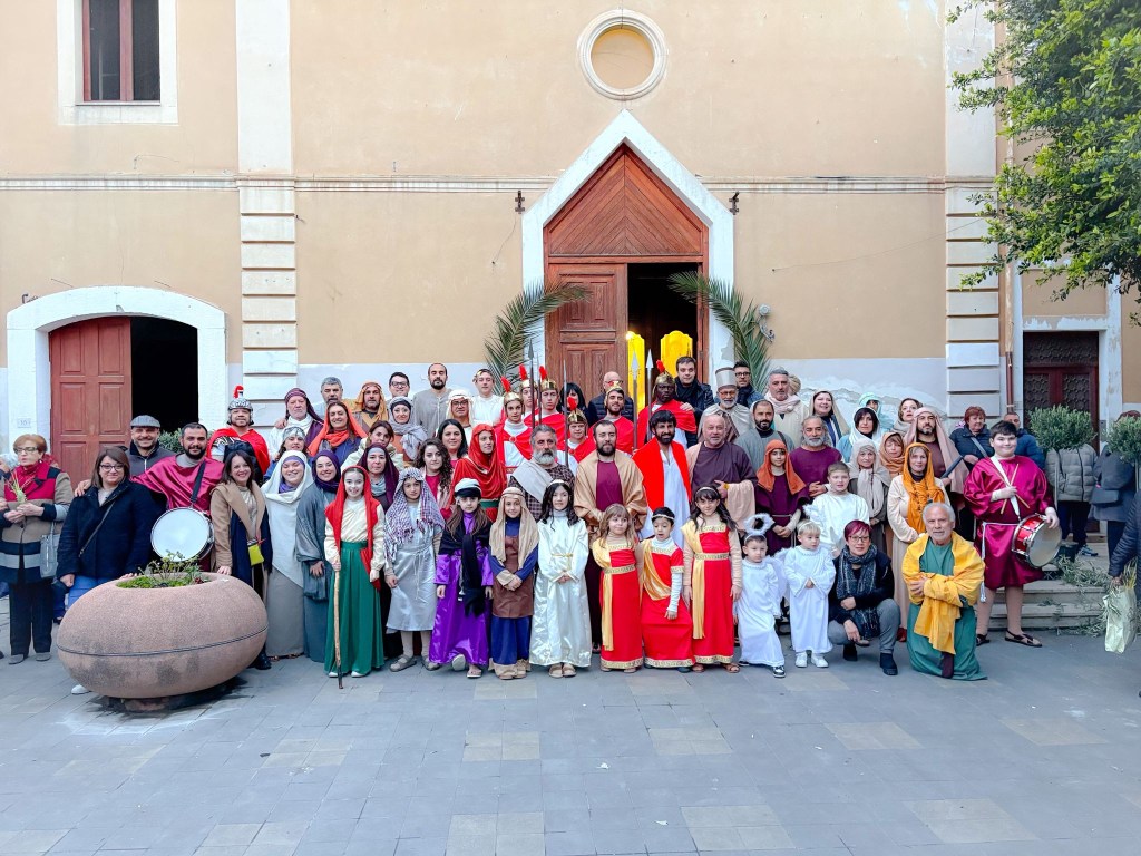 Davanti alla chiesa, l’immagine era potente: decine di figuranti, adulti e bambini, uniti in un’unica visione. Un mosaico umano che raccontava appartenenza, dedizione, radici. Poi il racconto ha preso corpo, scena dopo scena, accompagnato da voci fuori campo capaci di guidare il pubblico dentro un percorso di sofferenza e redenzione. Fino all’ultimo atto, la crocifissione: un momento sospeso, quasi irreale, in cui il tempo si è fermato per lasciare spazio solo alla commozione.