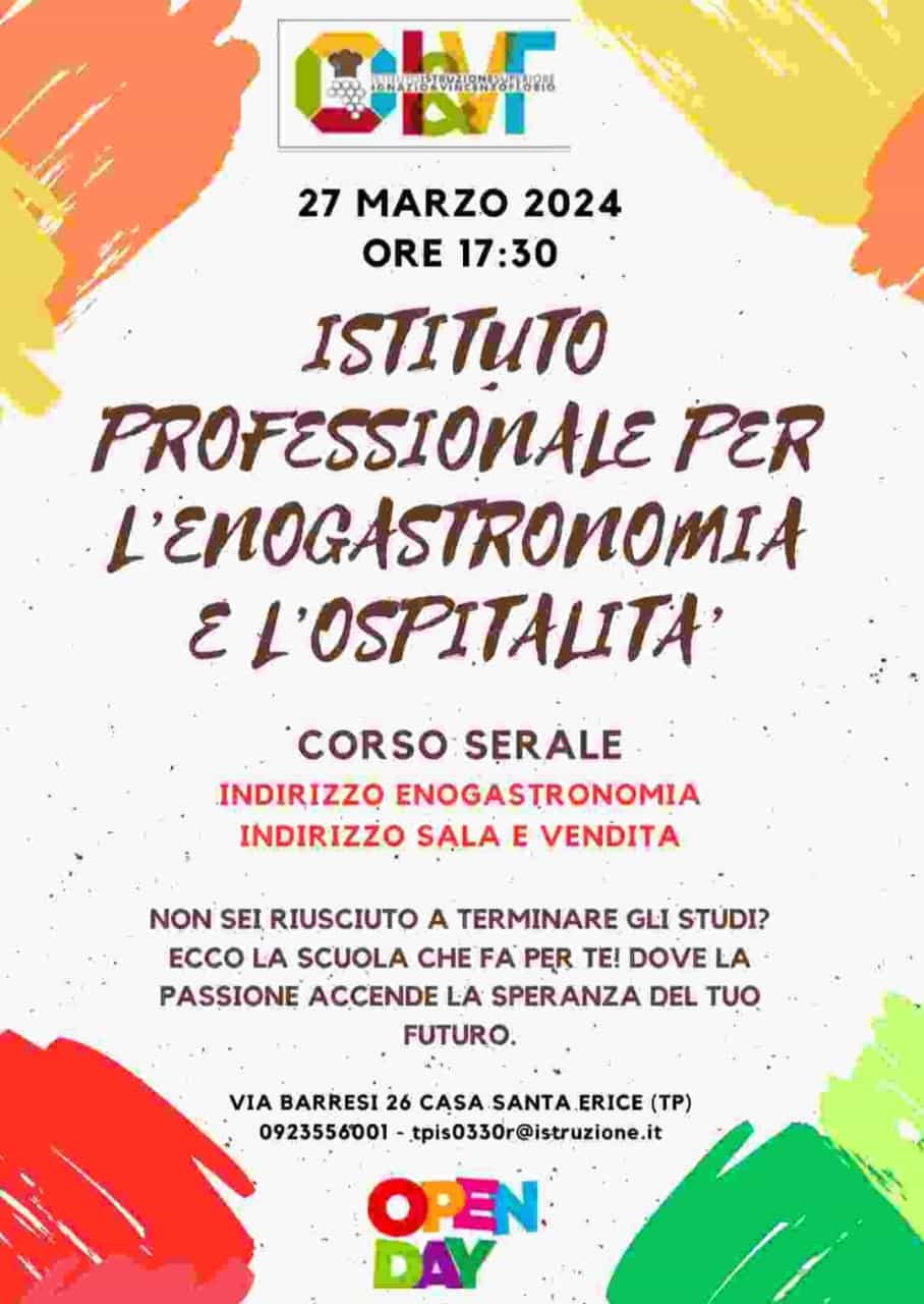 Open day dei corsi serali all’Istituto Superiore ‘Florio’ di Erice mercoledì 27 marzo alle ore 17.30 nella sede centrale di via Barresi.