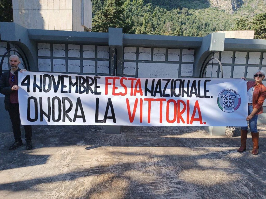 Palermo, 4 novembre: CasaPound corona i monumenti alla Vittoria di tutta la Nazione, con corone di alloro e striscioni recanti la frase “4 novembre festa nazionale. Onora la Vittoria!”.