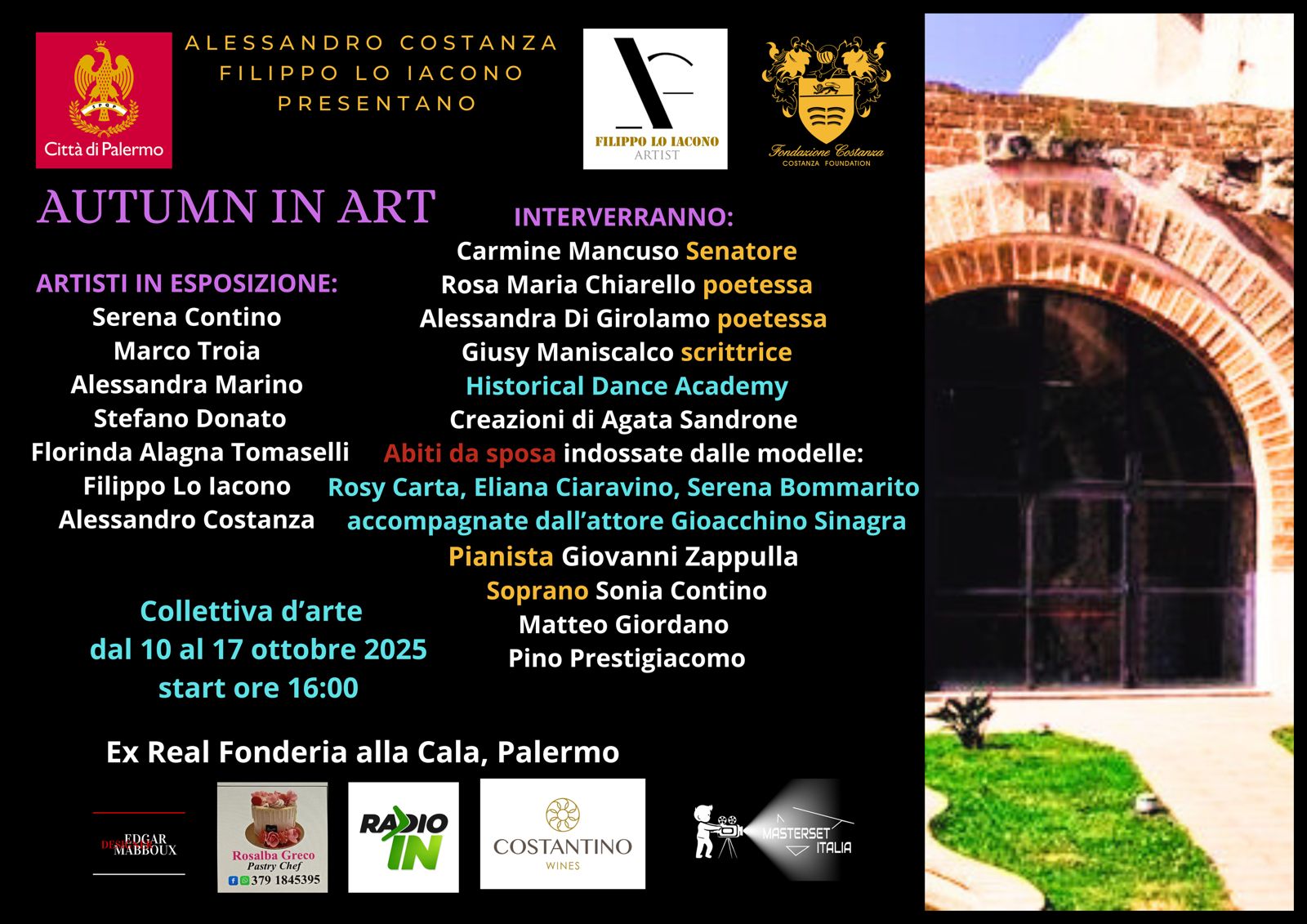 Alessandro Costanza e Filippo Lo Iacono presentano una collettiva d’arte presso l’Ex Real Fonderia alla Cala di Palermo dal 10 al 17 ottobre 2025, inaugurazione venerdì alle ore 16, con il patrocinio della città di Palermo.