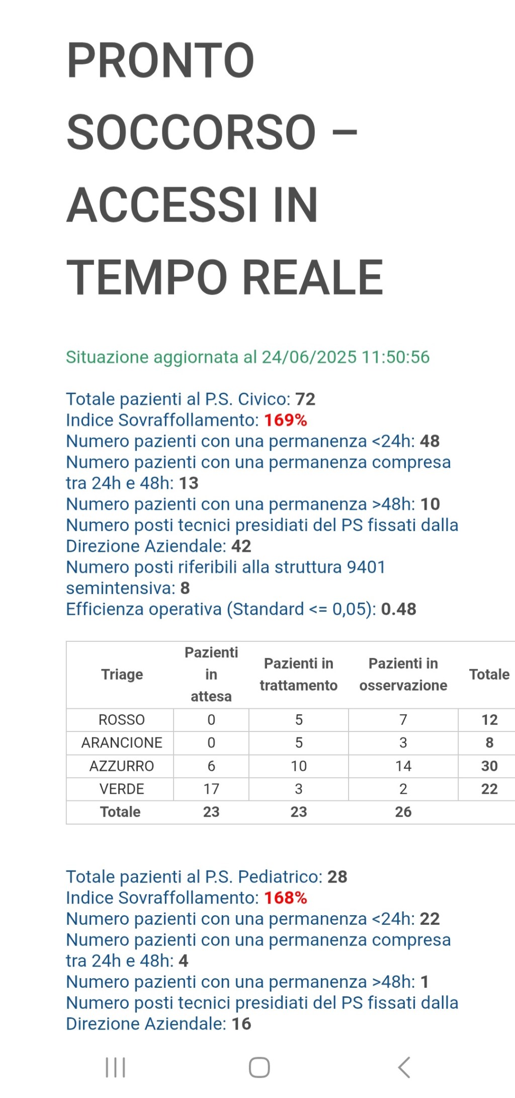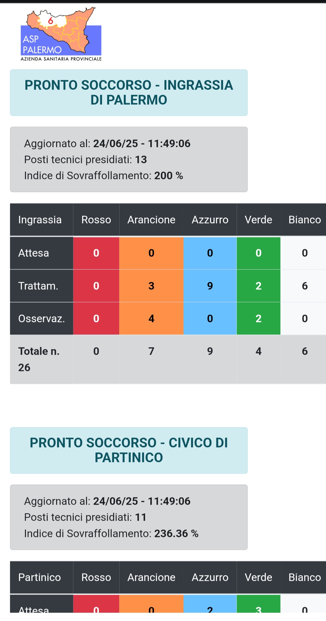 Buongiorno, questa è la situazione oggi di alcuni dei pronto soccorso di Palermo.