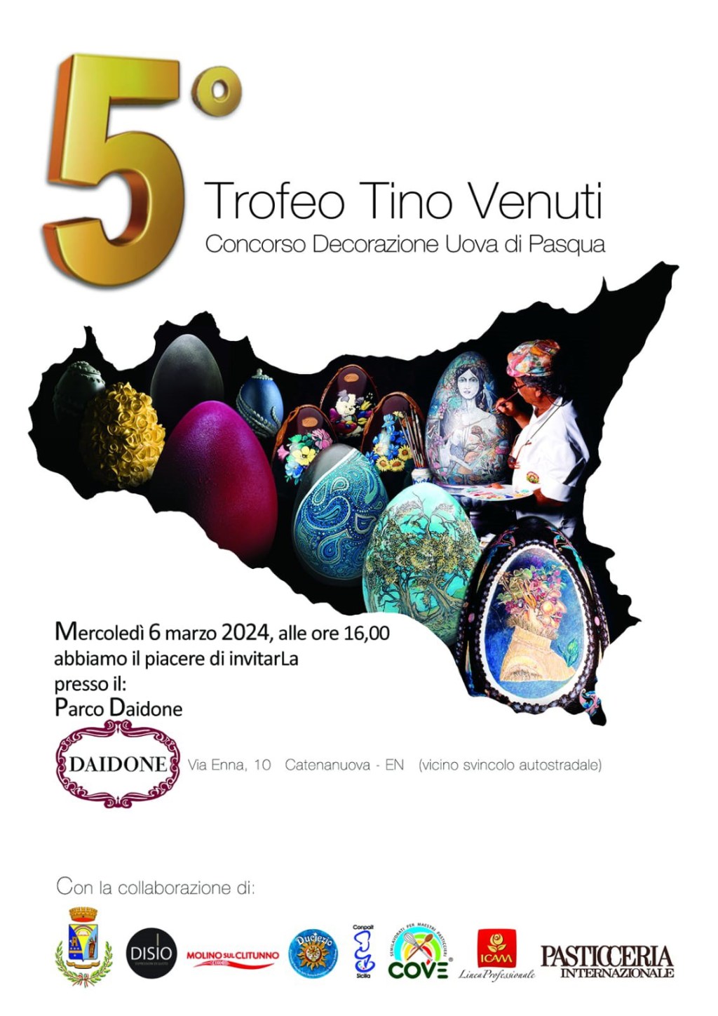 Il concorso, dedicato a Tino Venuti storico pasticcere catanese ricordato anche come fondatore dell’azienda CO.VE., ha lasciato i partecipanti liberi di scegliere il tema. A valutare gli elaborati, secondo i criteri della bellezza, dell’originalità e della bravura dell’esecuzione, sarà una giuria accreditata composta da rinomati pasticceri siciliani, artisti e professori di Storia dell’Arte. I primi tre classificati della categoria studenti Licei Artistici e i primi tre classificati della categoria Istituti Alberghieri, saranno premiati con targhe, libri e abbonamento alla rivista Pasticceria Internazionale. L’associazione Duciezio ha fornito alle scuole le uova in cioccolata e i colori alimentari, una volta realizzate le decorazioni, le uova saranno consegnate nella sede del Parco Daidone entro le 12.30 del 6 marzo.