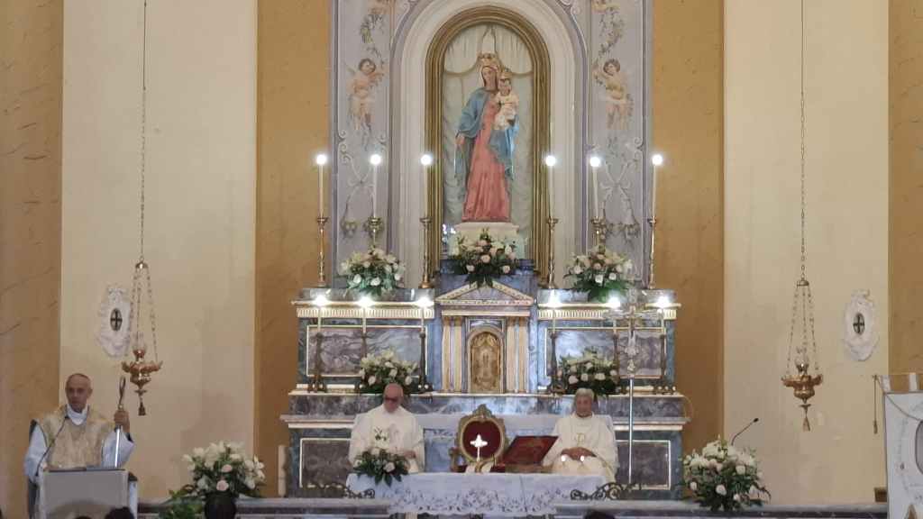 La celebrazione, organizzata dalla Parrocchia di Passopisciaro, si è svolta nella storica chiesa del paese, gremita di fedeli, visitatori e personalità istituzionali. A officiare la solenne Santa Messa è stato il Vescovo Mons. Antonino Raspanti, affiancato dal Parroco Gabriele Sgroi e dall’anziano e amatissimo don Antonino Imbiscuso. Presenti le autorità civili e militari, tra cui il neo Sindaco Concetto Stagnitti con la sua giunta e il Luogo-Tenente Salvatore Sciuto dei Carabinieri. L’evento è stato seguito anche dalla TV locale Video Regione (canale 14), che ha documentato una celebrazione sentita e partecipata.