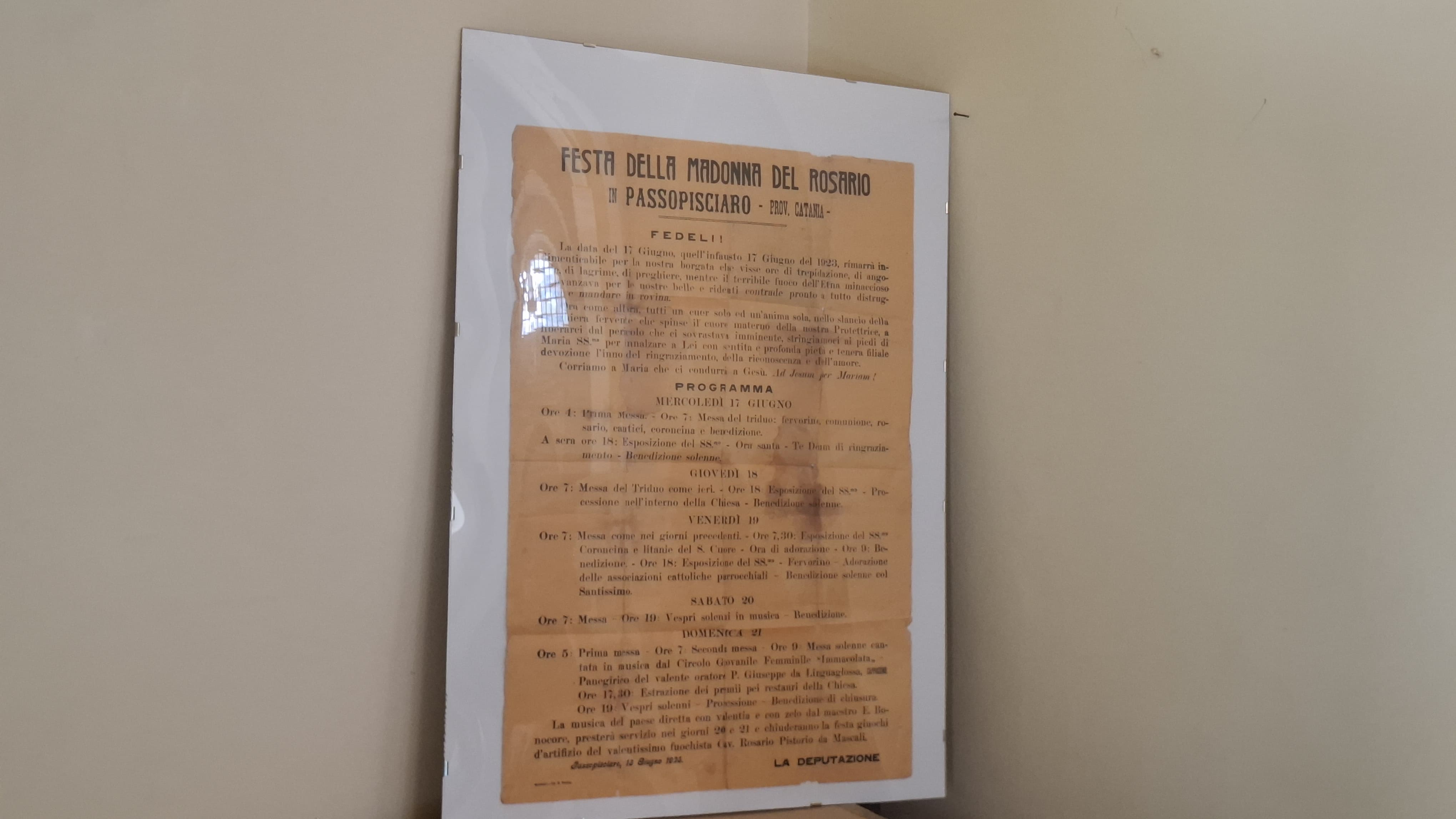Nel cuore della chiesa, una mostra fotografica allestita nelle navate laterali ha raccontato, attraverso immagini d’epoca e documenti originali, la storia di Passopisciaro: dalla tragedia del vulcano alla rinascita spirituale e sociale. Il signor Maurizio Papotto, con un discorso toccante al termine della messa, ha rievocato i momenti chiave del passato, illustrando il programma festivo del 1925 e ricordando i caduti delle guerre mondiali, i volti degli antenati, e le scene di vita quotidiana del paese.
