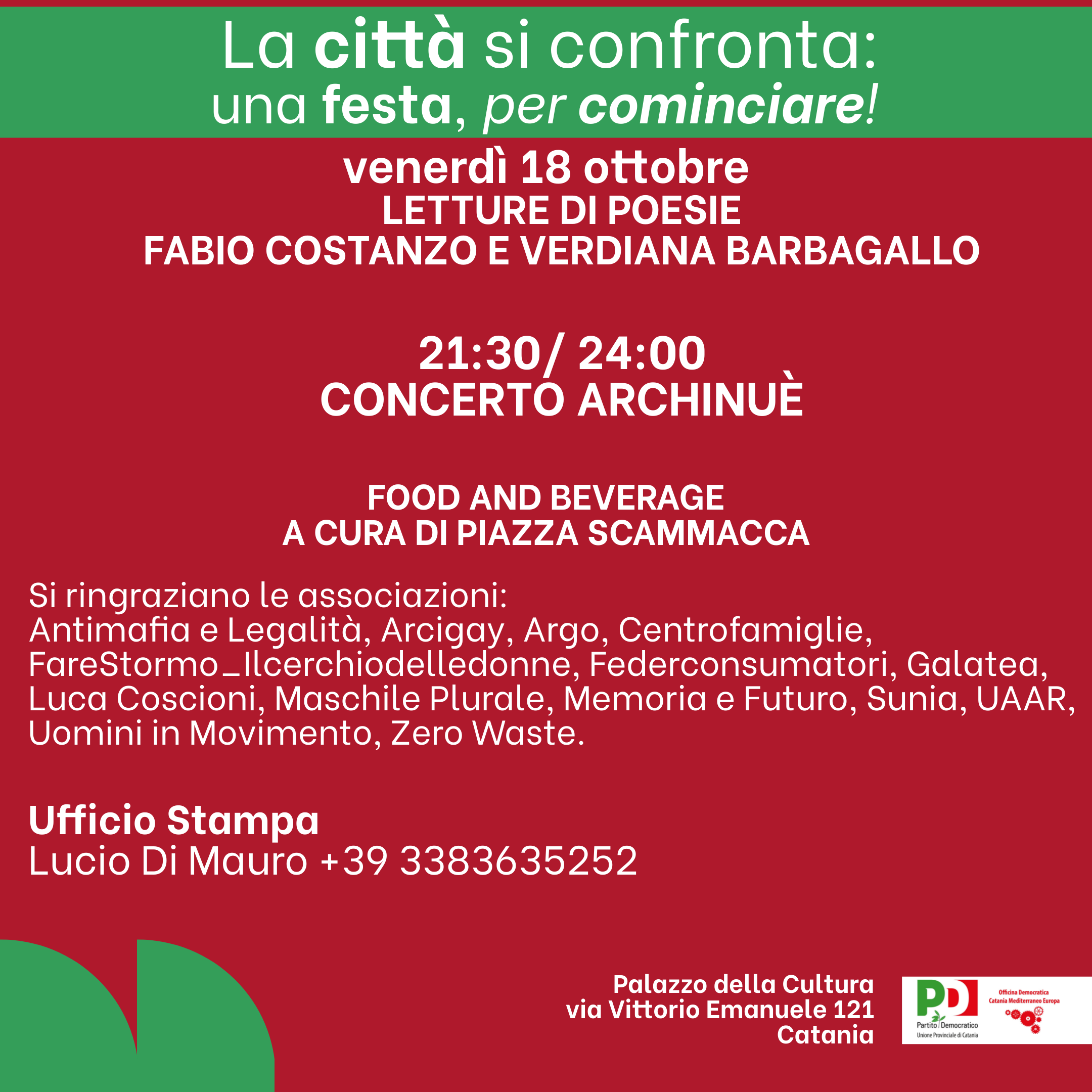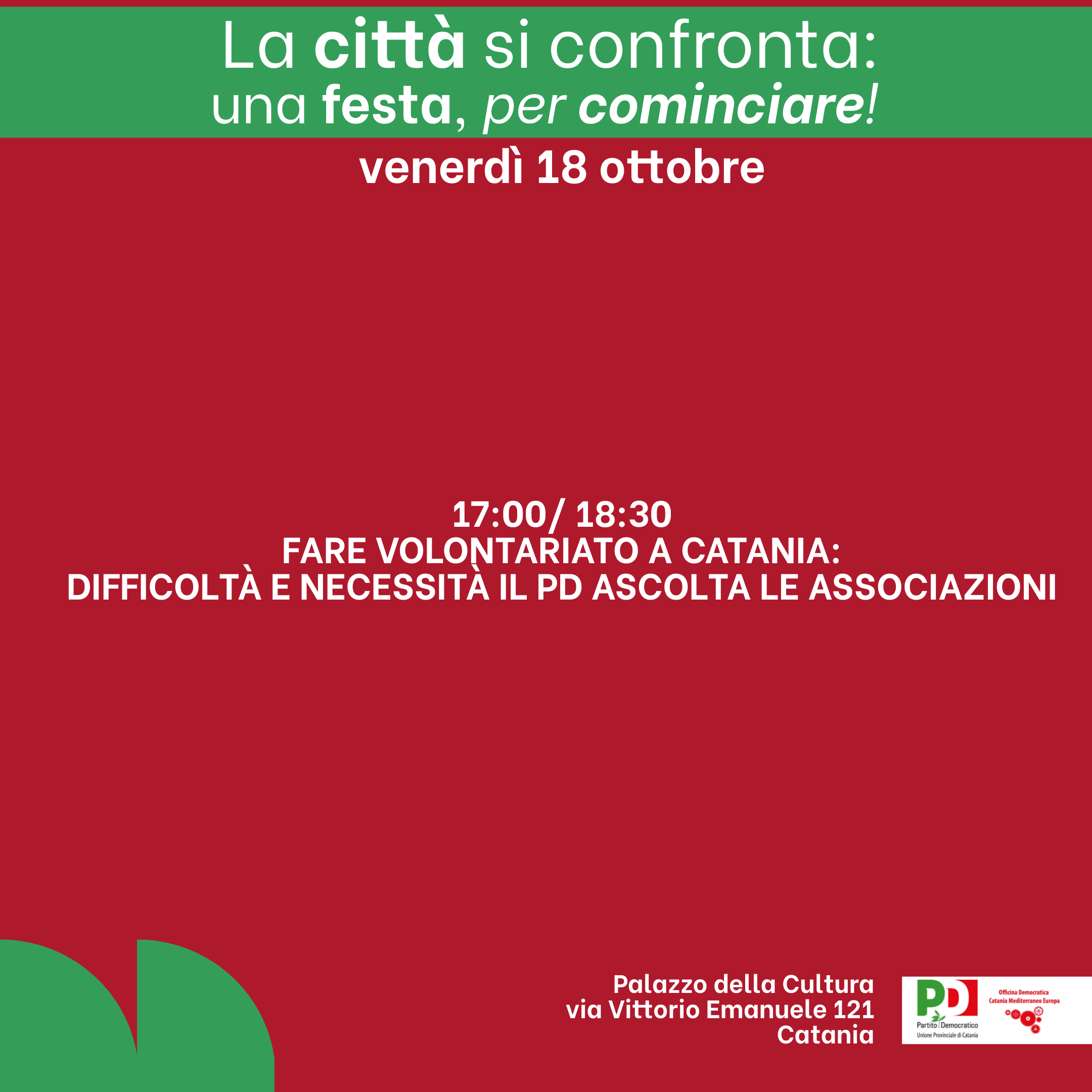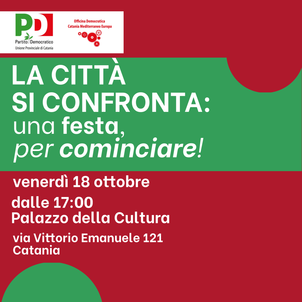 L’ingresso è libero e tutti sono invitati a partecipare, per contribuire con le proprie idee al dibattito, sul futuro di Catania e del Partito Democratico.