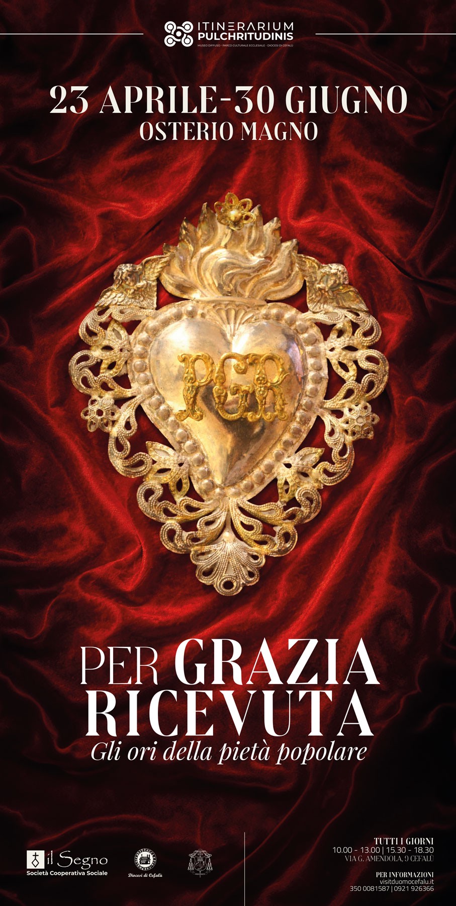 Sarà inaugurata giovedì 23 aprile 2026 alle ore 18.30, presso l’Osterio Magno di Cefalù (PA), la mostra “Per Grazia Ricevuta. Gli ori della pietà popolare”, curata dalla Cooperativa Sociale “Il Segno” in collaborazione con il Museo Diocesano Diffuso e l’Ufficio Beni Culturali Ecclesiali della Diocesi di Cefalù.