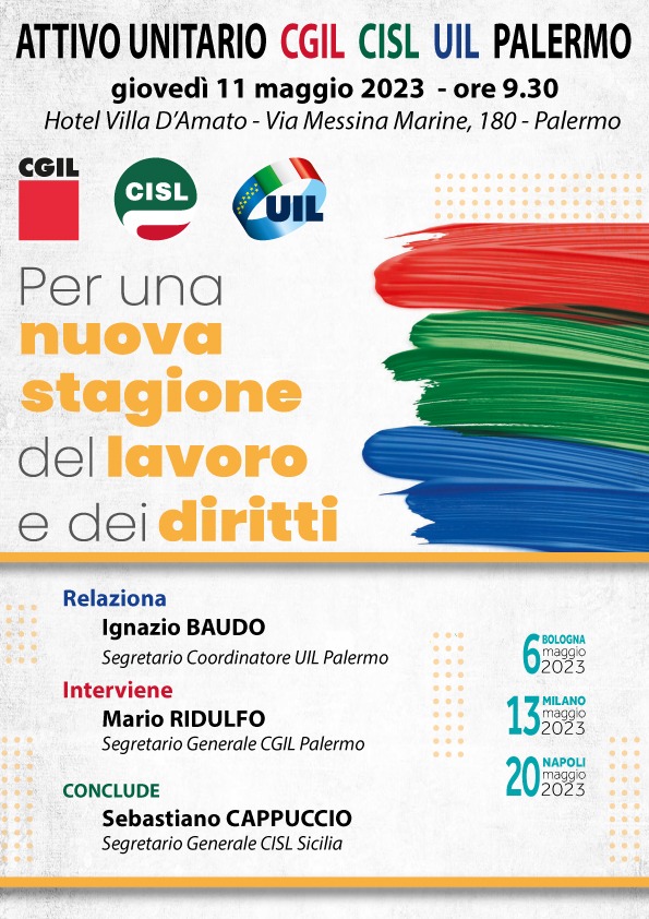 Approda a Palermo la mobilitazione nazionale unitaria di Cgil Cisl Uil per chiedere al governo un cambiamento delle politiche industriali, economiche, sociali e occupazionali. Si terrà giovedì 11 maggio presso l’hotel Villa D’Amato in via Messina Marine, 180 dalle ore 9,30, l’attivo unitario Cgil Cisl Uil Palermo, per lanciare le proposte dei tre sindacati per una nuova stagione del Lavoro e dei Diritti. Introdurrà i lavori il segretario coordinatore provinciale Uil Palermo Ignazio Baudo, interverrà il segretario generale Cgil Palermo Mario Ridulfo e concluderà il segretario generale Cisl Sicilia Sebastiano Cappuccio. Il percorso unitario si concluderà a Napoli il prossimo 20 maggio dove si terrà la manifestazione nazionale con la quale i tre sindacati confederali chiederanno il rilancio del Sud del Paese. “Serve una reazione forte da parte della politica a tutti i livelli – commentano i tre segretari generali Cgil Cisl Uil Palermo Mario Ridulfo, Leonardo La Piana e Luisella Lionti – , perche non è più possibile rinviare una stagione di rinascita nel nostro territorio. Le famiglie soffocate dal caro vita, i giovani vanno via perché nella loro città non riescono a vedere possibilità occupazionali, i pensionati e i soggetti deboli non hanno una adeguata assistenza social e sanitaria. Bisogna partire dall’uso adeguato del PNRR, dallo sviluppo delle potenzialità del territorio, dal rispetto dei diritti, dall’equità sociale, dalle politiche attive che rendano il mercato del lavoro inclusivo, non precario, orientato e garantito da investimenti”. I tre segretari concludono “sono tutti temi che porteremo in piazza a Napoli il prossimo 20 maggio, perché dal Sud può davvero ripartire tutto il Paese”.