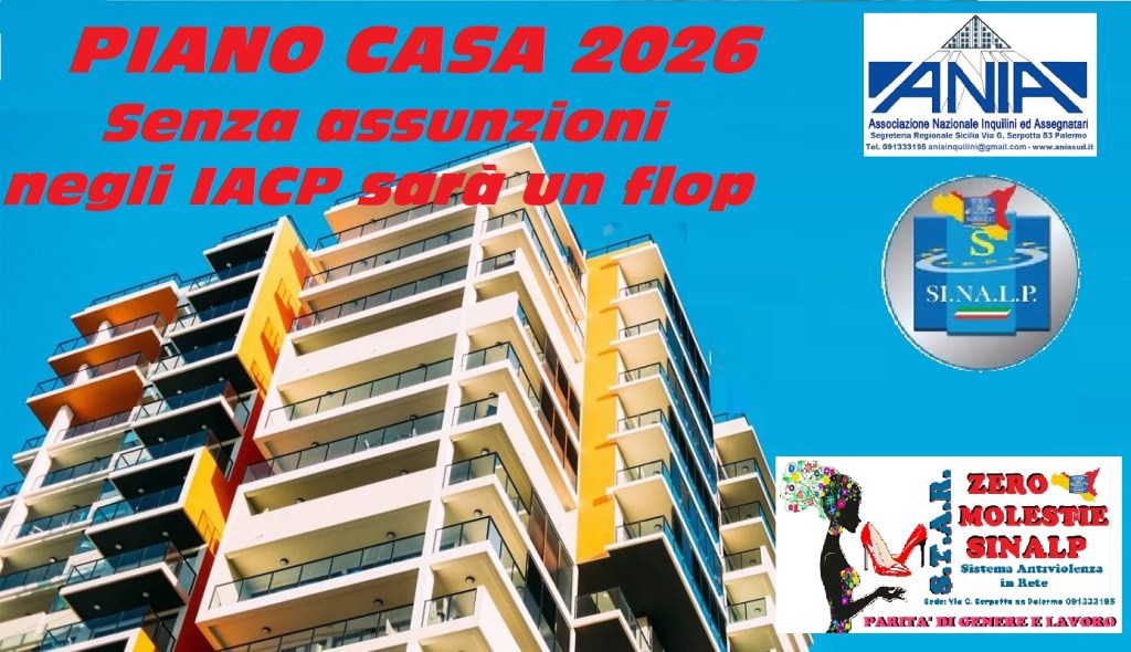 Presidente Consiglio dei MinistriPiano Casa 2026 in Sicilia: SINALP e ANIA lanciano l’allarme. Senza assunzioni straordinarie negli IACP il Piano sarà un flop. Richiesta ufficiale al Ministro Salvini di convocare urgentemente le Organizzazioni Sindacali