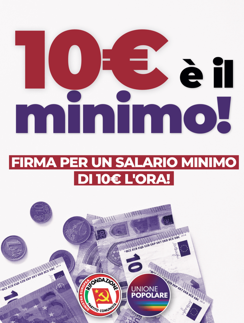 Per questa ragione, oggi, 2 giugno, festa della Repubblica, in numerose città italiane inizia una campagna di raccolta di firme promossa da Rifondazione Comunista e da altre forze di Unione Popolare per un disegno di legge di iniziativa popolare che ci vedrà per sei mesi nelle piazze, davanti le fabbriche e dove le condizioni di sfruttamento si manifestano con maggiore crudezza. Una legge che prevede che il salario minimo non possa essere inferiore ai 10,00 € l’ora. Una legge che già esiste in non pochi paesi europei mentre qui in Italia è stata osteggiata da tutti i governi che si sono susseguiti negli ultimi anni. In Italia abbiamo le retribuzioni più basse d’Europa (meno 2,9% negli ultimi trent’anni) ferite ulteriormente da un’inflazione feroce causata dalle manovre speculative originate dalla guerra. Per tale ragione la nostra proposta prevede l’indicizzazione automatica del salario minimo orario.