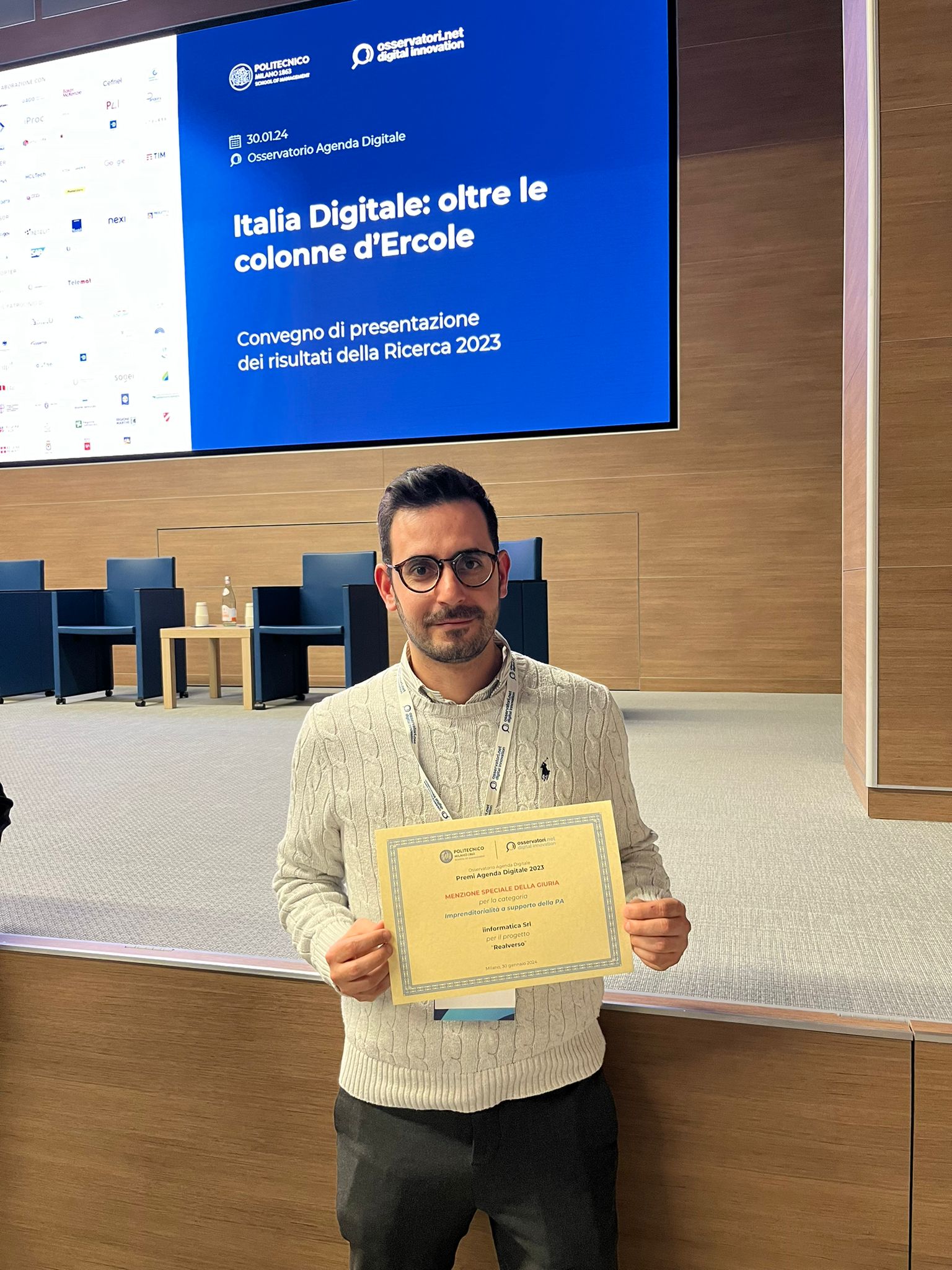Nella mattinata del 30 gennaio, in occasione dell’evento “Oltre le colonne d’Ercole”, organizzato dagli Osservatori Digital Innovation della School of Management del Politecnico di Milano, sono stati consegnati i premi Agenda Digitale 2023.