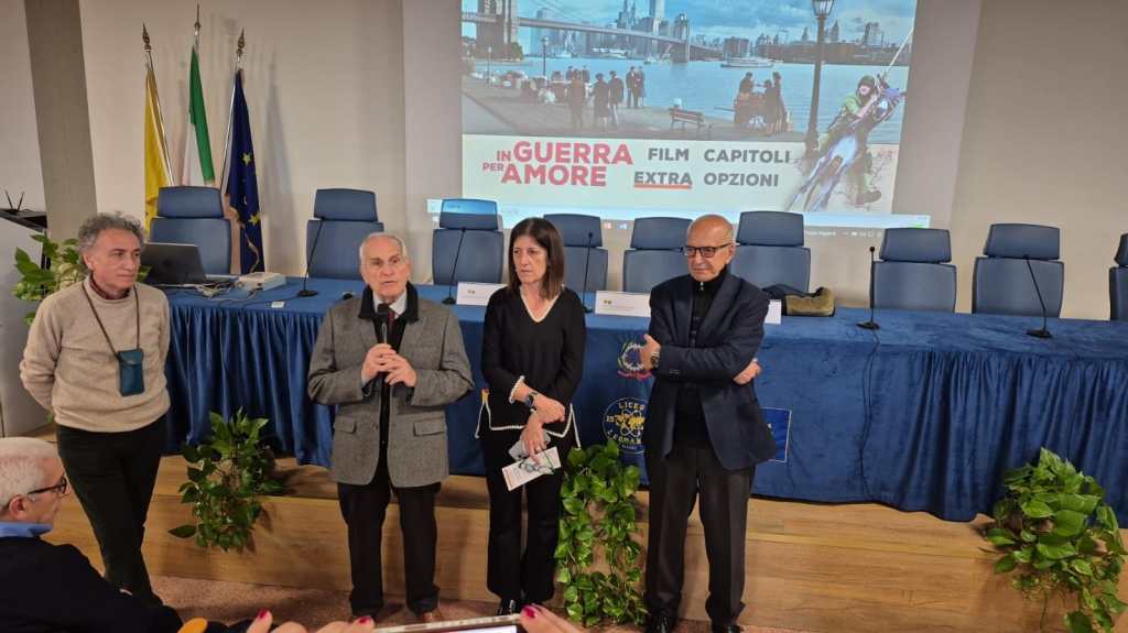Si è svolto nell’aula magna del Liceo Scientifico “Leonardo” di Giarre il secondo incontro del Premio B.Andò con la proiezione del film “In guerra per amore” (2016), diretto e interpretato da Pif. Gli studenti degli istituti di Giarre e Riposto sono stati salutati dalla Dirigente Scolastica Tiziana D’Anna, la quale ha dichiarato di “essere lieta di ospitare questa nuova edizione del Premio B.Andò che quest’anno si sofferma su un argomento di estremo interesse per la nostra società confermando ancora una volta l’ottimo lavoro che svolge la Fondazione Nuovo Mezzogiorno nel promuovere temi di rilievo per la formazione culturale dei ragazzi”.