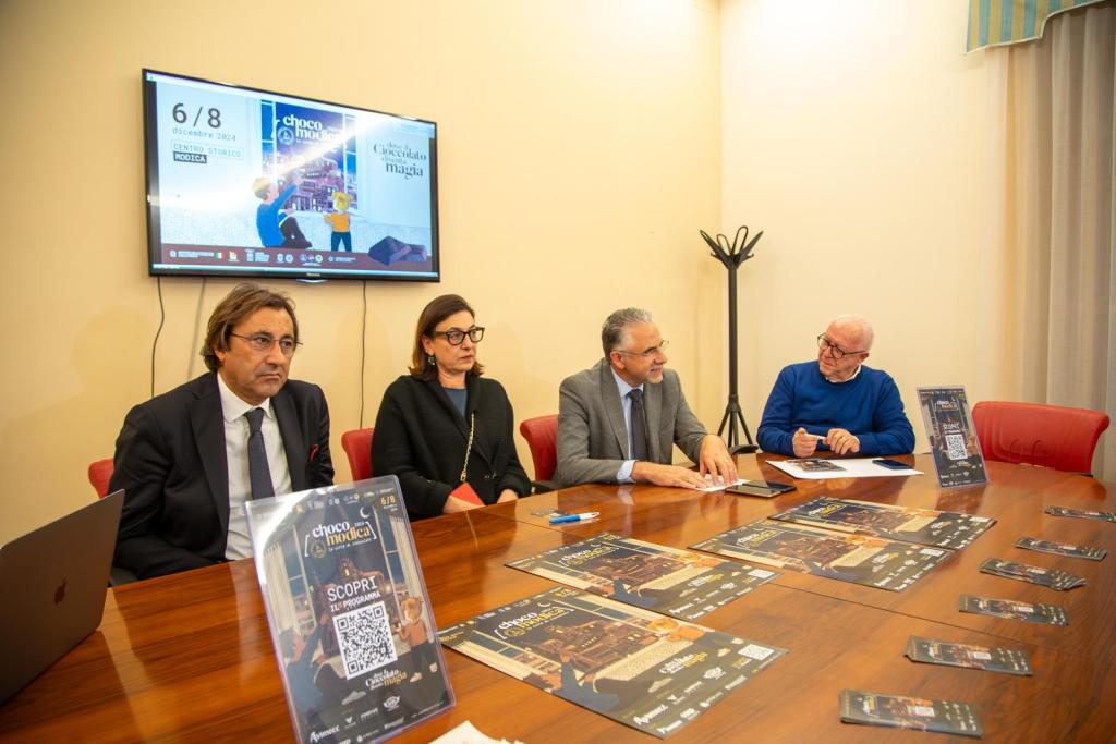 A illustrare l’edizione 2024, il sindaco di Modica, Maria Monisteri, l’on. Ignazio Abbate, il direttore del Libero Consorzio Comunale di Ragusa, Nitto Rosso e il direttore del Consorzio Tutela Cioccolato di Modica, Nino Scivoletto.