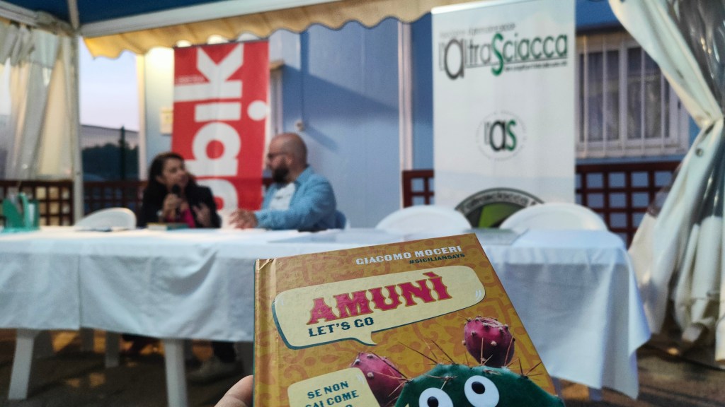Si è svolta ieri sera presso il “Circolo Nautico il Corallo” di Sciacca la presentazione del libro “Amunì – Let’s go” del giovane creativo castelvetranese Giacomo Moceri. L’evento, organizzato dall’Associazione L’AltraSciacca e Libreria Ubik, ha visto un folto pubblico composto da tanti seguaci della pagina social Siciliansay che raccoglie buona parte dei contenuti presenti nel libro.