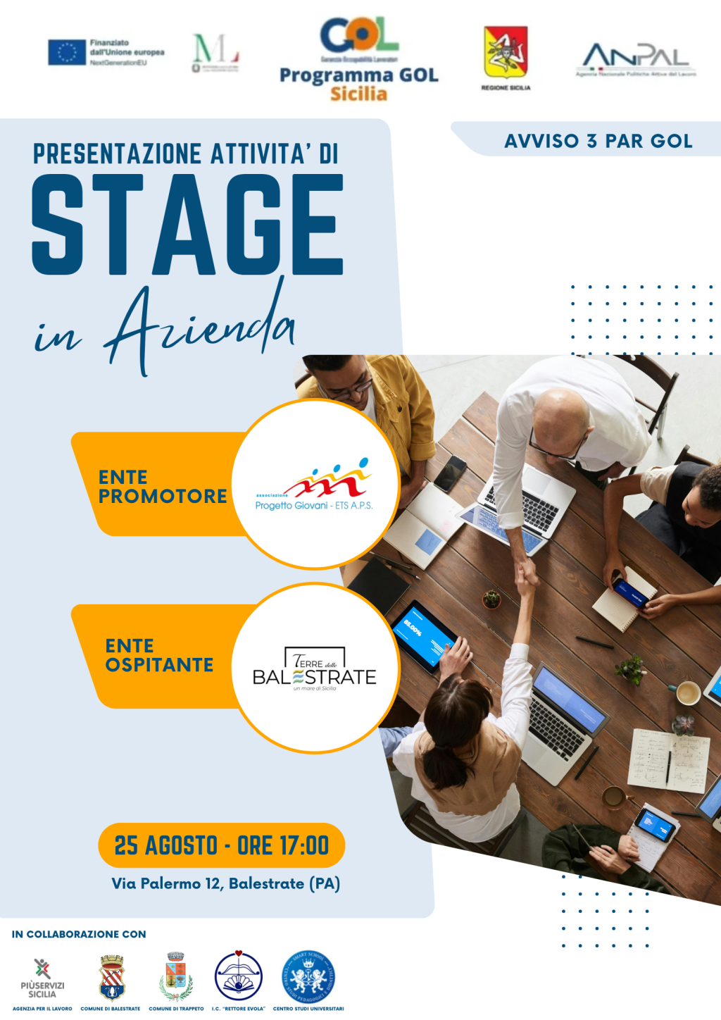Lunedì 25 Agosto ore 17:00 evento di presentazione dell’attività di stage in azieda, per i nostri allievi del corso di Addetto Amministrativo Segretariale a valere sull’Avviso 3 PAR GOL