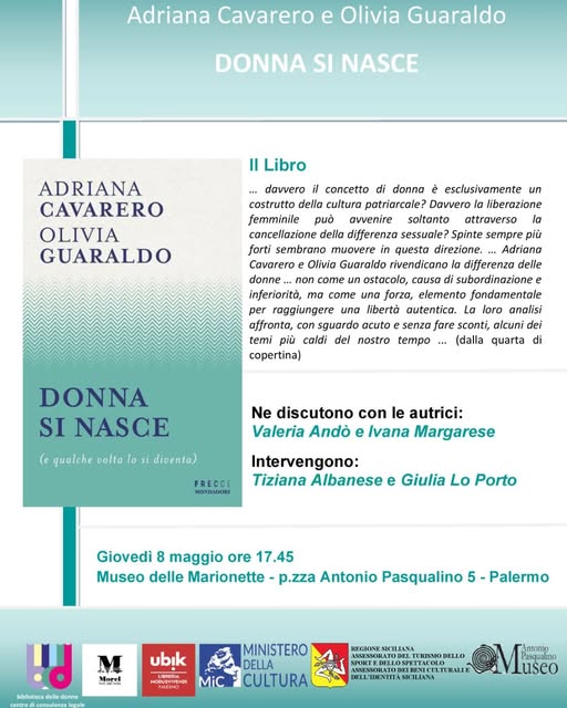 Parte il conto alla rovescia per la presentazione del volume: Donna si nasce (e qualche volta lo si diventa), Mondadori. Di Adriana Cavarero, Olivia Guaraldo.