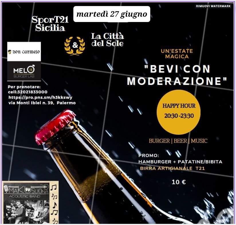 Una serata speciale con la combinazione di diversi ingredienti: Burger/Beer/Music/social inclusive, che vuole agganciare con la birra T21, con un ulteriore forza commerciale il percorso di sicilianità già intrapreso.