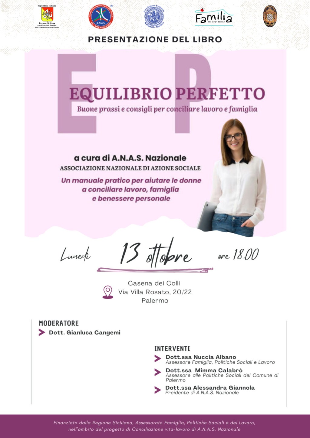 L’evento rientra nel progetto di Conciliazione vita-lavoro promosso da A.N.A.S. Nazionale e finanziato dalla Regione Siciliana – Assessorato Famiglia, Politiche Sociali e del Lavoro.