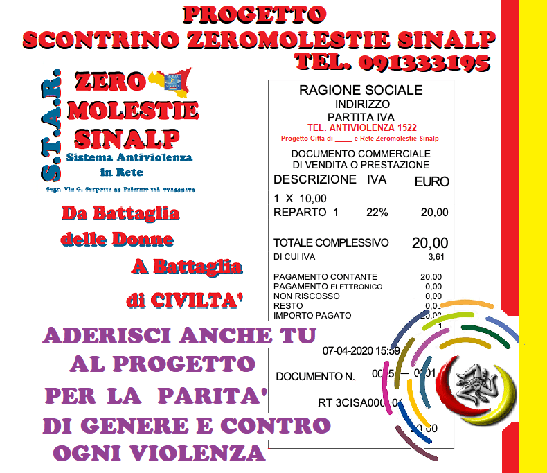All’interno di questo sconcertante quadro statistico, La Rete antiviolenza Zeromolestie Sinalp propone agli enti locali, sensibili a questa tematica, il “Progetto Scontrino Zeromolestie Sinalp”.