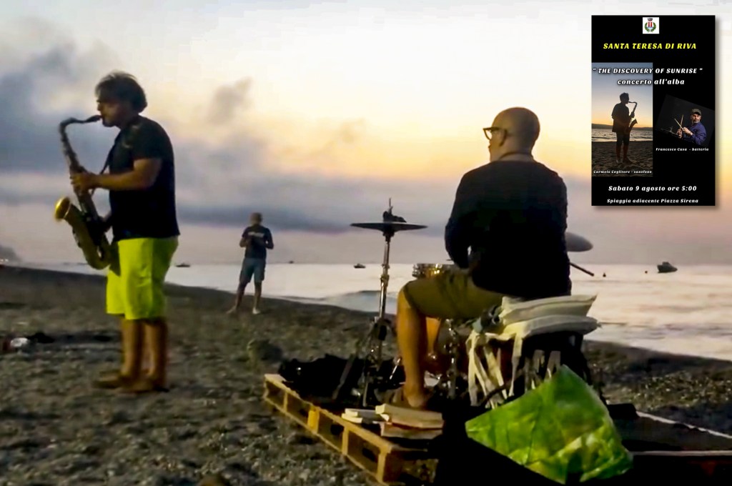 Sabato 9 agosto, alle ore 5:00 del mattino, sulla spiaggia accanto a Piazza Sirena, a Santa Teresa di Riva, il pubblico potrà vivere un’esperienza sonora unica con “The Discovery of Sunrise – Ancora un’altra alba”, performance ideata dal sassofonista Carmelo Coglitore, con il patrocinio del Comune di Santa Teresa di Riva.