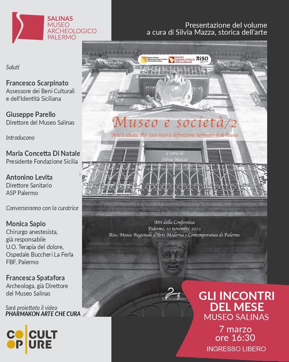 Venerdì 7 marzo, alle 16.30 il Museo Archeologico Salinas di Palermo ospita la presentazione del volume “Museo e società/2. Arte e salute“. Per una nuova definizione normativa di museo, a cura di Silvia Mazza, storica dell’arte, edito da Il Cigno Arte di Roma.