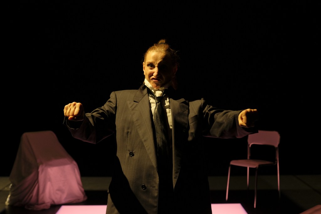 Lo spettacolo si districa tra il monologo interiore, sviluppato in un flusso di coscienza, il teatro fisico e il teatro di narrazione, dove l’interprete si fa portavoce di diversi personaggi, rappresentandoli e restituendoli al pubblico attraverso gli strumenti principali dell’attore: la voce e il corpo.