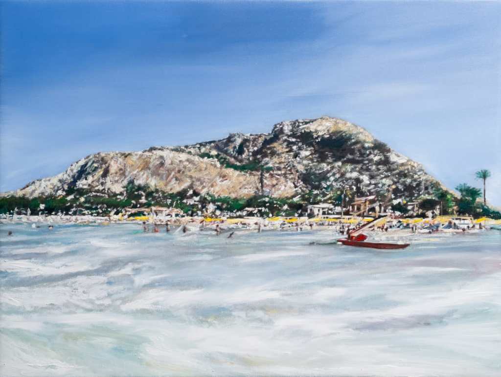 “Intanto inizio col dire che proporre la mostra all’interno di un hotel, di un luogo di tutti, sicuramente di turisti, non è casuale – spiega Tommaso Chiappa -. Negli ultimi anni del mio lavoro mi sono sempre più allontanato da un sistema di mostre in contesti usuali: questo, credo, sia il futuro dell’arte contemporanea. Troppo spesso noi artisti, curatori o galleristi ci sentiamo gli unici eletti a comprendere o a divulgare l’arte, ma io reputo che la pittura, il creare arte, nasca da un’esigenza di esprimersi e di riosservare il mondo e proporne una visione. La location è fondamentale, perché, allargando le possibilità, una fabbrica, uno studio, un muro, un’azienda diventano portatori di messaggi, divulgatori di cultura. Mondello, ad esempio, per me è un luogo carico di ricordi legati alla mia infanzia, al rapporto con il mare, all’osservazione dell’infinito, insomma sta all’origine della mia pittura “. Nelle opere di quotidiano l’artista quindi partendo dal reale apparentemente scontato vai in profondità cercando una penetrazione nel reale di fondamentale importanza. Questo andare in profondità rileggendo la realtà sospendendola è una caratteristica dell’artista che cerca un possibile incontro con qualcosa di inatteso”.