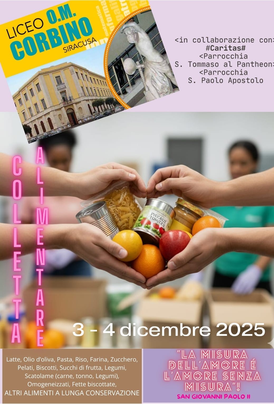 Ancora una volta, il Liceo Corbino conferma la propria vocazione formativa: educare non soltanto attraverso le discipline, ma anche attraverso esperienze che intrecciano educazione civica, orientamento e partecipazione. Valori come vicinanza, fraternità e senso del bene comune diventano così pratica quotidiana, illuminando il cammino degli studenti e offrendo alla città un segno tangibile di speranza. In occasione del XX Anniversario della fondazione della Mensa dei Poveri la Parrocchia guidata dal don Massimo Di Natale apre le porte alle classi 5d e 4ds che svolgeranno prossimamente servizio di volontariato presso la mensa, sotto la guida dei docenti di Religione professori Lombardo e Amenta come didattica orientativa in tema di cittadinanza attiva.