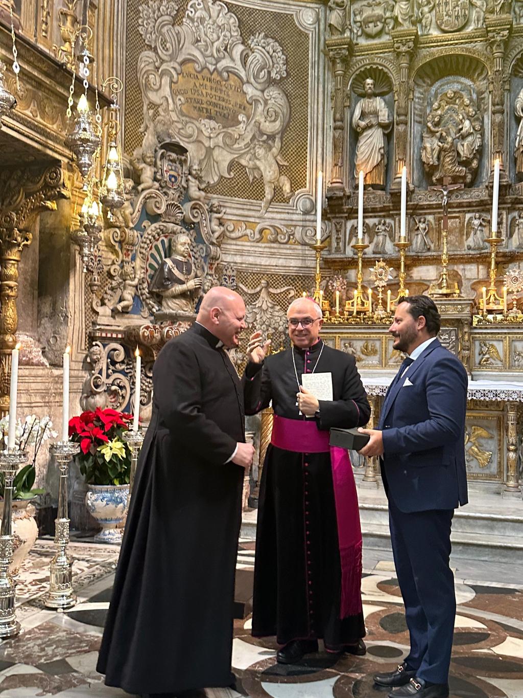 Al termine della cerimonia in cattedrale, il dottore Russo Morosoli, insieme all’arcivescovo di Catania e a Monsignor Barbaro Scionti, ha inaugurato il presepe collocato all’interno delle Terme Achilliane.