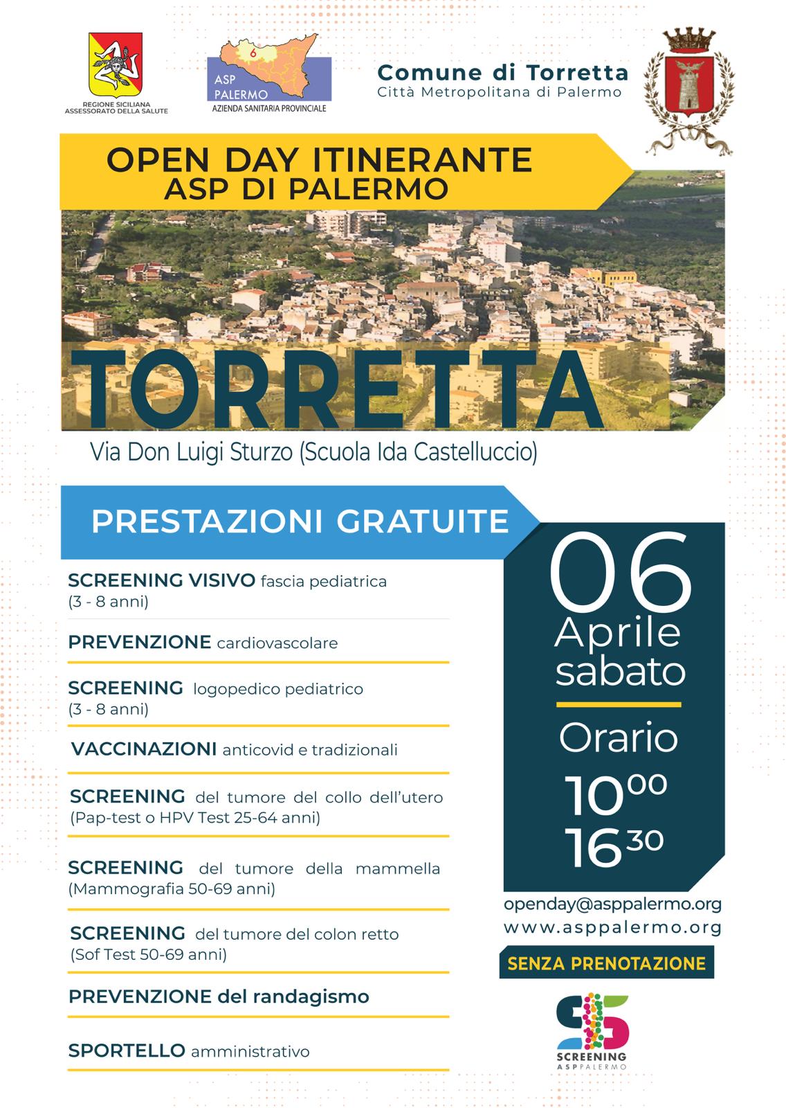 PALERMO 4 APRILE 2024 – Basterà presentarsi muniti del documento di riconoscimento e della tessera sanitaria per effettuare gratuitamente la mammografia, il pap test o ricevere il sof test per la ricerca del sangue occulto nelle feci. Sono alcuni degli esami proposti dall’Asp di Palermo sabato prossimo, 6 aprile, a Torretta nella seconda tappa stagionale dell’Open Day Itinerante della prevenzione organizzata in collaborazione con la locale Amministrazione comunale.