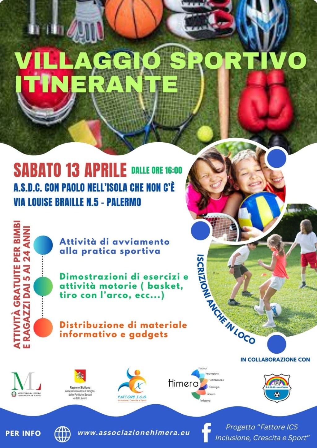 L’associazione A.C.S.D H.I.M.E.R.A. APS ha dato vita al progetto “Fattore I.C.S – Inclusione, crescita e sport”, cofinanziato dal Ministero del Lavoro e delle Politiche Sociale e dalla Regione Siciliana – Assessorato della Famiglia, delle Politiche Sociali e del Lavoro nell’ambito dell’Avviso Pubblico di cui al D.D.G. 976 del 22/06/2022.