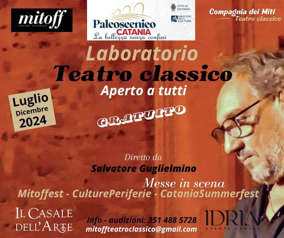 Da quest’anno al progetto “Mitoff periferie- teatro classico la musica e i miti nei quartieri” si aggiunge il “Laboratorio Teatro Classico” ideato e diretto dall’attore e regista Salvatore Guglielmino da cui nascerà “La Compagnia dei miti”.