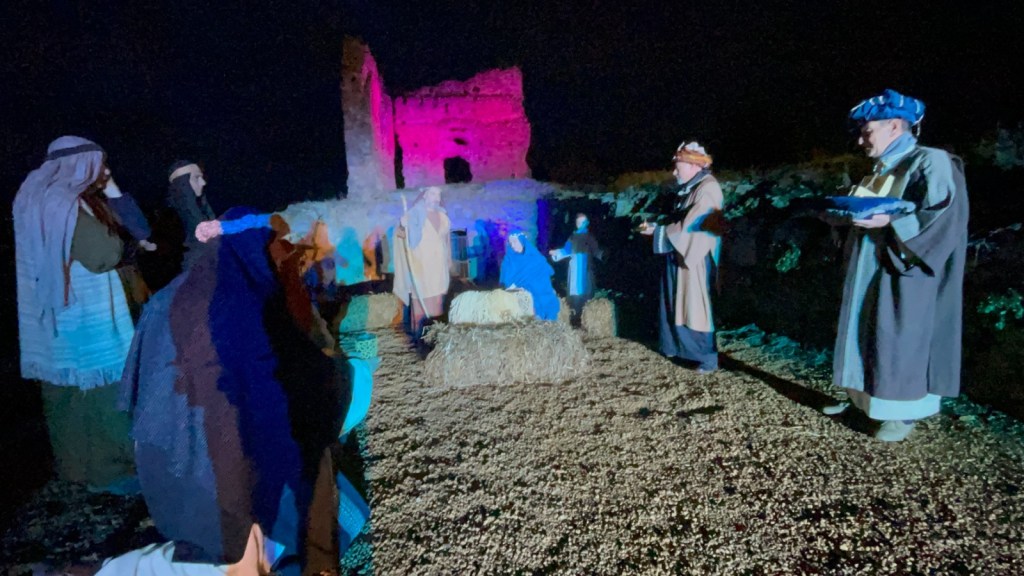 Momento di grande suggestione è stata la Natività vivente ai ruderi del Castello Gravina, impreziosita dal clima silenzioso e raccolto e dai canti della tradizione siciliana riprodotti in filodiffusione dal duo Bellamorèa, formato dai fratelli Emanuele e Francesco Bunetto, che hanno accompagnato il pubblico in un omaggio musicale autentico e profondo al paese e alla sua identità.