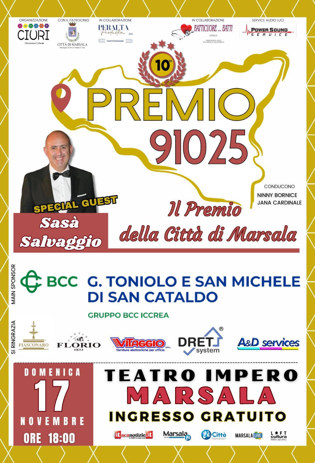 Manca poco: domenica 17 novembre, alle ore 18, al Teatro Impero, verrà celebrata la decima edizione del “Premio 91025 – Eccellenze della Città di Marsala”, organizzato dall’Associazione Culturale “Ciuri” e nato da un’idea del suo presidente, Filippo Peralta. Un evento atteso dedicato alle “Eccellenze” del territorio, che attraverso il proprio lavoro e la propria attività artistico-culturale, imprenditoriale, associativa, hanno contribuito in maniera significativa a portare sempre di più in auge il nome di Marsala.