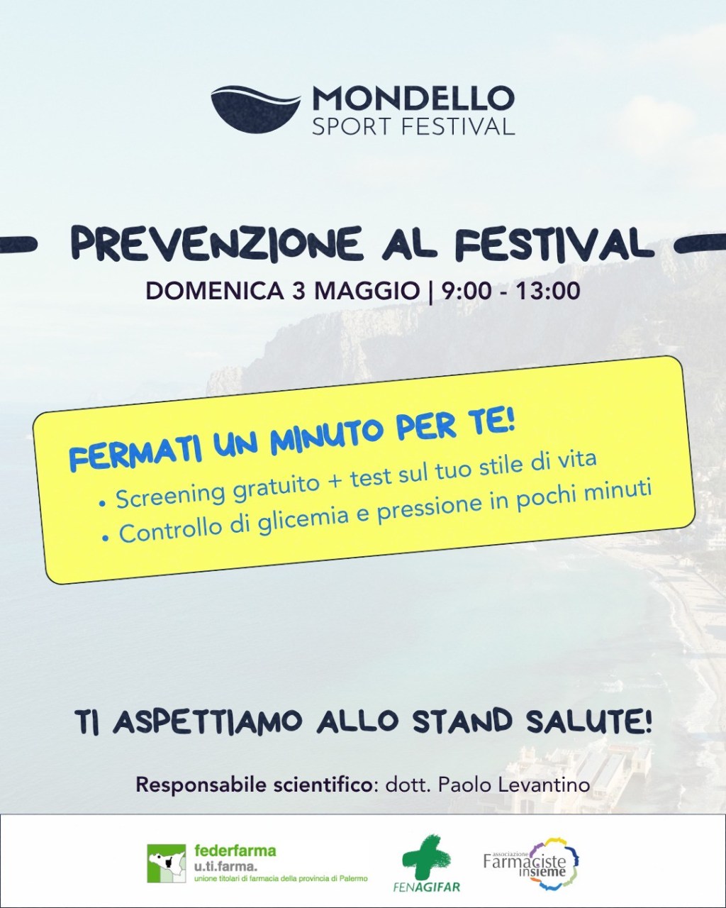 Screening gratuiti per tutti, atleti e semplici visitatori. E’ la marcia in più del “Mondello Sport Festival 2026” che da quest’anno interviene nel mondo della salute guardando al cittadino tramite una campagna prevenzione e screening gratuiti. Da giovedì 30 aprile fino a domenica 3 maggio lo “Stand Salute”- allestito nella traversa di via Regina Elena, di fronte all’ex Charleston- vedrà la collaborazione tra i farmacisti di Federfarma Palermo, Farmaciste Insieme e Fenagifar, affiancati da nutrizionisti esperti per offrire controlli preventivi ad atleti e visitatori sul territorio delle principali malattie cardiovascolari.