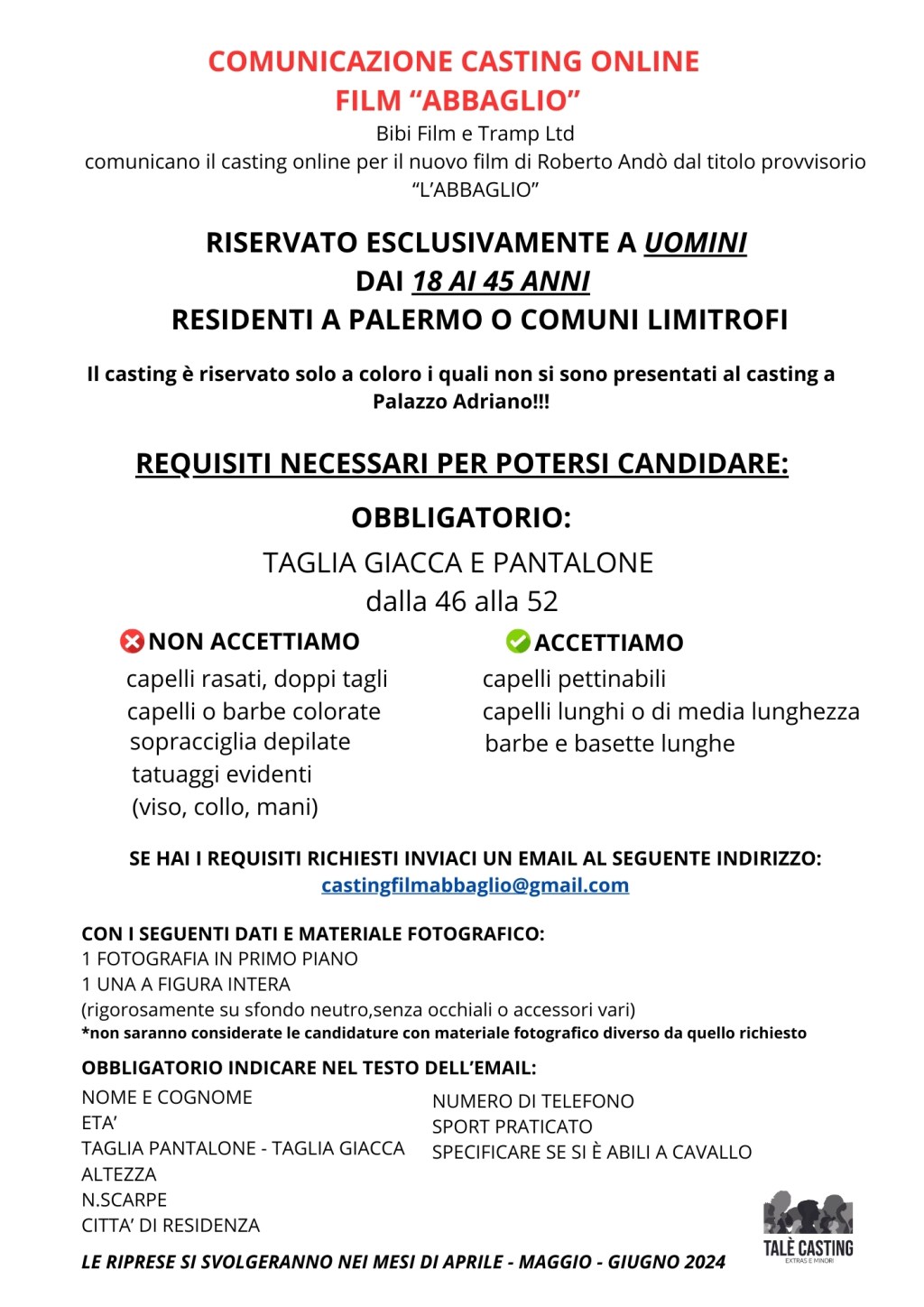 Il casting è riservato solo a coloro i quali non si sono presentati al casting a