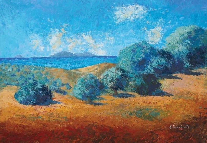 Accanto a lui, Maria Teresa Giunta, pittrice siciliana che cattura scorci e paesaggi con una sensibilità impressionistica. Le sue tele restituiscono una Sicilia che è tanto reale quanto evocativa, sospesa tra la luce e il tempo.